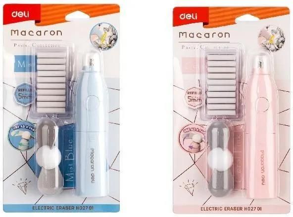 Gumka elektryczna z wiatraczkiem DELI EH02701. Szukasz niecodziennego gadżetu, który łączy funkcjonalność z frajdą użytkowania? Poznaj gumkę elektryczną z wiatraczkiem DELI EH02701 – absolutną nowość na rynku, która zaskoczy nie tylko uczniów i studentów, ale również artystów, projektantów i fanów stylowych akcesoriów! Co wyróżnia ten produkt? To nie jest zwykła gumka! To innowacyjne urządzenie 2w1, które: dokładnie wymazuje nawet najcieńsze linie grafitu, idealne do szkiców i rysunków technicznych, posiada miniwiatraczek, który zapewnia delikatny podmuch powietrza – świetny na letnie dni lub gdy potrzebujesz odrobiny chłodu podczas pracy. Stylowy design i pastelowe kolory. Zaprojektowana w popularnej serii Macaron, gumka dostępna jest w subtelnych pastelowych odcieniach: coral pink i mist blue (wysyłane losowo). Nowoczesny wygląd idzie tu w parze z ergonomicznym kształtem, który idealnie leży w dłoni. Najważniejsze cechy: 2w1 – gumka i wiatraczek w jednym urządzeniu Elektryczna precyzja – błyskawicznie usuwa ślady ołówka bez rozmazywania Chłodzący wiatraczek – przyjemny dodatek, który zaskakuje użytkowników Bezpieczna dla dzieci – produkt PVC-free i nietoksyczny Wymiary: 128 × 27 × 22 mm Dla kogo? uczniów i studentów – jako praktyczne i modne akcesorium szkolne artystów – do precyzyjnego wymazywania detali w rysunku nauczycieli – jako kreatywny upominek dla uczniów każdego, kto kocha nowoczesne i nietuzinkowe rozwiązania! Idealny pomysł na prezent!Zaskocz bliską osobę wyjątkowym dodatkiem do biurka. Gumka elektryczna DELI z wiatraczkiem to świetny prezent na zakończenie roku szkolnego, na urodziny czy jako drobna nagroda za kreatywność. Uwaga, wysyłamy jeden z dostępnych wzorów produktu. Kraj produkcji: CN