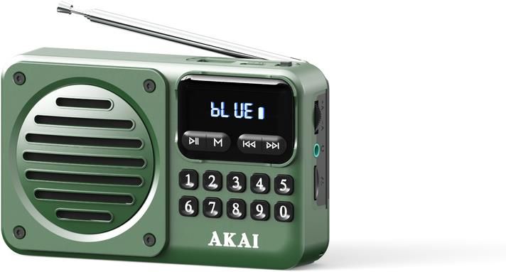 AKAI APR-300 Radio przenośne Bluetooth 5.3 MP3 USB/microSD zielone Radio przenośne Bluetooth AKAI APR-300 – retro design + nowoczesne funkcje Bluetooth 5.3 | MP3 przez USB/microSD | FM | akumulator | ultralekki Opis produktu AKAI APR-300 to kompaktowe radio przenośne, które łączy klasyczny wygląd retro z funkcjami, których oczekujesz od współczesnego urządzenia audio. Niewielka waga i rozmiar sprawiają, że towarzyszy Ci bez trudu wszędzie: w domu, na działce, w biurze czy w podróży. Model oferuje bezprzewodową łączność Bluetooth 5.3, umożliwiając wygodne odtwarzanie muzyki ze smartfona bez kabli. Dodatkowo możesz słuchać ulubionych utworów z pendrive’a USB lub karty microSD/TF, a wbudowany odbiornik FM z teleskopową anteną zapewnia stabilny odbiór stacji radiowych. Najważniejsze cechy Bluetooth 5.3 – bezprzewodowe odtwarzanie muzyki Obsługa USB i microSD/TF – odtwarzanie MP3 bez telefonu RadioFM– odbiór stacji 87,5–108 MHz z teleskopową anteną Akumulatorwbudowany– do kilku godzin pracy na jednym ładowaniu Ultralekka konstrukcja– tylko ok. 160 g Klasycznywyglądretro– styl i funkcjonalność w jednym Wejściesłuchawkowe– prywatne odsłuchy Prostaobsługa – ergonomiczne przyciski i antena teleskopowa Retro klimat, mobilna wygoda AKAI APR-300 to idealne rozwiązanie dla osób, które chcą połączyć klasyczny styl z nowoczesnymi funkcjami. To radio nie tylko brzmi dobrze, ale też wygląda świetnie na półce, stoliku nocnym czy biurku. Dzięki akumulatorowi i niskiej wadze (ok. 160 g) możesz zabrać go praktycznie wszędzie. Zawartość zestawu radio AKAI APR-300 antena teleskopowa kabel do ładowania (USB) instrukcja obsługi Dane techniczne łączność bezprzewodowa: Bluetooth 5.3 moc wyjściowa: 2,5 W RMS (5 W PMPO) pasmo przenoszenia: 80 Hz – 20 kHz impedancja: 3 Ω stosunek sygnał/szum: 55 dB zniekształcenia: 10 % radio FM: 87,5 – 108 MHz antena: teleskopowa wejścia: USB, TF/microSD/MMC odtwarzane formaty: MP3 wyjście słuchawkowe: tak czas pracy: do ok. 6 h (50 % głośności) ok. 4 h (75 % głośności) czas ładowania: 3–4 h zasilanie: DC 5 V akumulator: 3,7 V / 1200 mAh obudowa: ABS Dlaczego warto? mobilne radio z Bluetooth i MP3 idealny towarzysz domu, biura i podróży lekki i poręczny – zabierzesz go wszędzie klasyczny styl retro w nowoczesnym urządzeniu