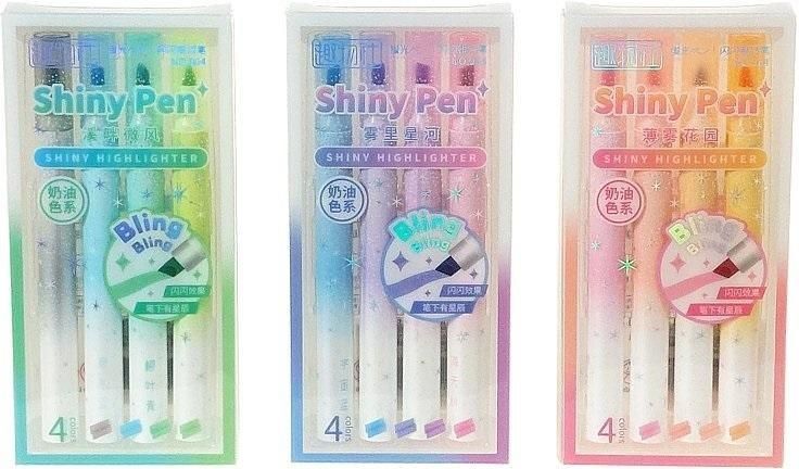 Flamastry brokatowe 4 kolory. Różne kolory, produkt wysyłany losowo, cena za 1 sztukę. Wymiary: 154x71 mm Grupa wiekowa: 3+ Opakowanie: plastikowe