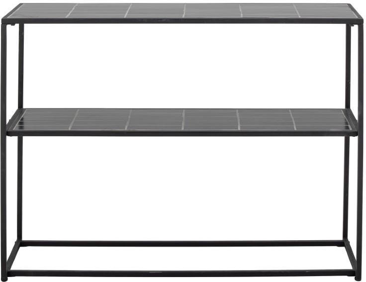Konsola Junema minimalistyczny wygląd, więc doskonale wpasuje się do wielu wnętrz. To co ją wyróżnia to półki wykonane z kamienia, które tworzą ceramiczną mozaikę. Takie rozwiązanie nadaje jej skandynawskiego charakteru. Rama konsoli została wykonana z metalu, więc całość jest bardzo wytrzymała, każda półka może utrzymać obciążenie około 20 kg.