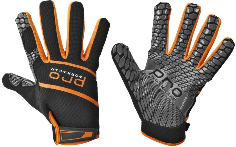 Rękawice monterskie z silikonowymi wypustkami.Wierzchnia strona tych wytrzymałych rękawic została wykonana z elastycznego spandeksu, natomiast wewnętrzna strona dłoni – z syntetycznej skóry z silikonowymi wypustkami, zapewniającymi bardzo dobry chwyt!Wytrzymałe i wygodneSyntetyczna skóra gwarantuje znakomitą odporność na ścieranie, a oddychający wierzch ze spandeksu zapewnia komfort i elastyczność – przez cały dzień.Zapewnia dobre wyczucie palcomElastyczny materiał na końcach palców pozwala zachować dłoniom elastyczność i wyczucie podczas prac montażowych.Bluewear Pro WorkwearProdukt należy do kolekcji Bluewear Pro – serii ubrań opracowanej z myślą o osobach mających duże oczekiwania wobec odzieży roboczej. Kolekcję tę wyróżniają dobry design, funkcjonalność, dopasowanie i jakość – a to wszystko w przystępnej cenie!