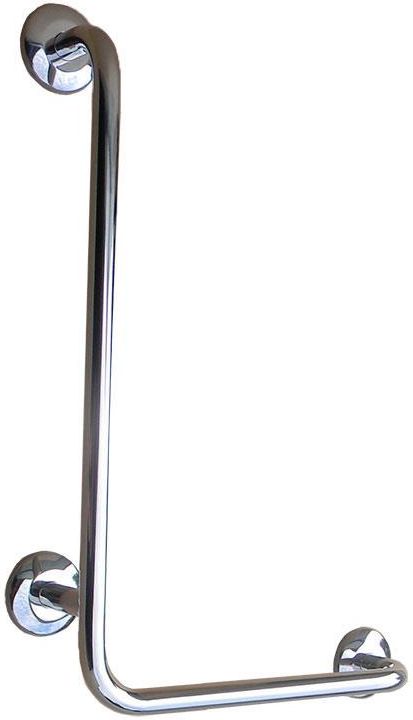 Poręcz dla niepełnosprawnych kątowa 700 x 500 mm Materiał: stal nierdzewna Wykończenie: matowe Wymiary: 700 x 500 x 102 mm (wys/szer/gł) Długość ramion: pionowe 700 mm, poziome 500 mm Średnica rury: Ø 32 Grubość stali: rura 1,5 mm, wspornik 3 mm Kąt zgięcia rury: 90° Montaż na kołki rozporowe (10 x 60 mm) i wkręty (6 x 60 mm) Zestaw montażowy w cenie Maskownica śrub Maksymalne obciążenie: 120 kg Gwarancja: 10 lat Posiada atest PZH Miejsce montażu: przy prysznicu przy WC