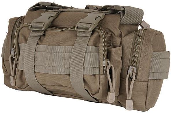 Nazwa produktu: Torba inżynierska GFC Producent: GFC Tactical Kod produktu: GFT-20-001016 Wykonanie: nylon Waga: 500g Kolor: tan Wymiary: 170x320x80mm Torba wykonana z włókna nylonowego. Dzięki dużej ilości przegród oraz kieszeni możliwe jest przenoszenie wielu narzędzi oraz drobnych akcesoriów. Torbę można zamontować na palsy zgodne ze standardem Molle, na pas biodrowy oraz nosić ją na ramieniu. Główna kieszeń o wymiarach 215x80x170mm posiada wewnątrz płaską kieszeń. Zewnętrzna kieszeń znajdująca się na froncie torby, o wymiarach 195x115x45mm również zaopatrzona jest w płaskie przegrody umożliwiające przechowywanie w nich dokumentów lub innych płaskich rzeczy takich jak np. plaster opatrunkowy. Boczne kieszonki o wymiarach 55x75x125mm posiadają zewnętrzne pasy umożliwiające zamontowanie dodatkowych ładownic. Wszystkie przegrody zapinane są za pomocą zamka błyskawicznego. Tylna część torby zaopatrzona jest w płaską przegrodę na zapinaną za pomocą rzepów.