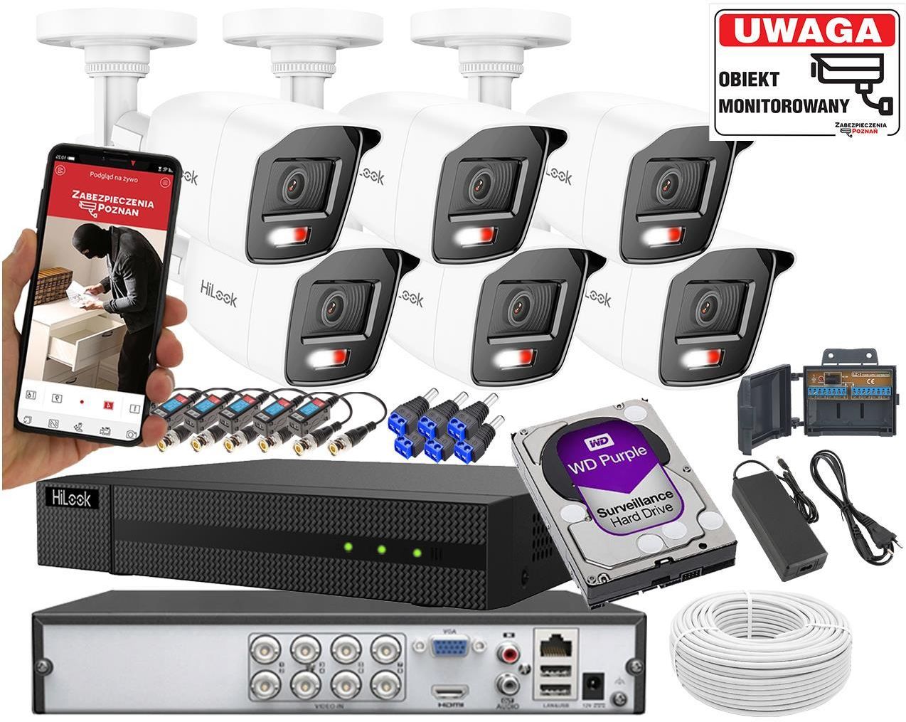 Zestaw monitoringu Hikvision zawiera: 6x Kamera tubowa 5Mpx - TVICAM-B5M-20DL HiLook by Hikvision Rejestrator XVR 8-kanałowy z zasilaczem i myszką - DVR-8CH-5MP HiLook by Hikvision Dysk twardy 1TB do CCTV (nagrywanie 24/7) - WD Purple 1TB Zasilacz do kamer 12V6A z zapasem mocy 1x Łączówka zasilania 12x Konwerter BNC do skrętki UTP (8 par) 6x Wtyk zasilający DC S-55 60 metrów przewodu typu skrętka UTP