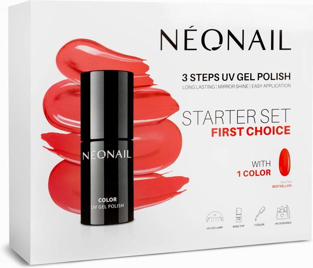 Zestaw startowy do hybryd FIRST CHOICE: 2 lakiery + lampa + akcesoria STARTER SET FIRST CHOICE, czyli zestaw do hybryd dla początkujących Szukasz idealnego zestawu do manicure hybrydowego, który pomoże Ci wykonać perfekcyjną stylizację paznokci? A może chcesz sprawić komuś bliskiemu prezent, z którego z pewnością się ucieszy? Wybierz STARTER SET FIRST CHOICE, czyli zestaw do hybryd dla początkujących! Znajdziesz w nim wszystkie niezbędne produkty i akcesoria, które wykorzystuje się podczas wykonywania trwałej stylizacji paznokci. Produkty, z których składa się zestaw do hybryd STARTER SET FIRST CHOICE: Lakier hybrydowy Sexy Red 7,2 ml – idealny odcień czerwieni, która świetnie dopasuje się do każdej karnacji. Podobny kolor znajdziesz już w asortymencie NEONAIL, czyli Fiery Flamenco, jednak Sexy Red jest jaśniejszy i bardziej wyrazisty. Base/Top 2in1 - baza oraz top w jednej buteleczce. Nie musisz zastanawiać się, jaki produkt nałożyć pod, a jaki na lakier kolorowy – wystarczy zaaplikować Base/Top 2in1 w formie bazy oraz topu i gotowe! Lampa LED ECO 12W/36 – w kilka chwil utwardzi każdą warstwę produktu, jaką nałożysz na swoje paznokcie. Idealna dla początkujących, ponieważ jest lekka, niewielka i łatwa w obsłudze. Nail Cleaner 50 ml – odtłuszczacz do przemywania paznokci, który jest niezbędny podczas wykonywania stylizacji. Aceton, czyli Remover 50 ml – produkt do usuwania manicure hybrydowego. Polerka łódka 100/180 – wykorzystasz ją do zmatowienia paznokci, zanim nałożysz bazę. Drewniane patyczki – idealne do odsuwania skórek lub usuwania stylizacji z paznokci. Zestaw do hybryd, który jest idealny dla początkujących? Zdecydowanie STARTER SET FIRST CHOICE od NEONAIL!