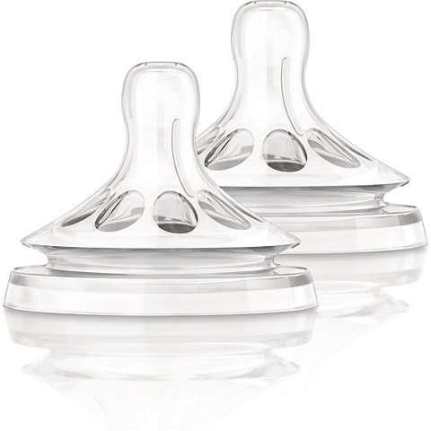 Idealny produkt dla noworodków Bardziej miękki smoczek o wolniejszym wypływie. W zestawie 2 sztuki First Flow - od pierwszego dnia życia. Smoczek niezawierający bisfenolu ASmoczek został wykonany z silikonu - materiału niezawierającego bisfenolu A, zgodnie z dyrektywą UE (2011/8/EU) Zaawansowany system antykolkowy z innowacyjnym, podwójnym zaworkiemInnowacyjny, podwójny zawór zmniejsza dyskomfort i częstotliwość występowania kolki, odprowadzając powietrze do butelki zamiast do brzuszka dziecka. Naturalne przysysanie do szerokiego smoczka w kształcie piersiSzeroki smoczek przypominający kształtem pierś pozwala dziecku w naturalny sposób przyssać się i ułatwia łączenie karmienia piersią i butelką. Smoczek o wolniejszym wypływieMniejsza wielkość otworu zapewnia wolniej pijącym dzieciom lepszą kontrolę prędkości picia. Smoczek dla noworodków Natural ma idealną prędkość wypływu do tego, aby rozpocząć karmienie dziecka butelką. Miękki smoczek o teksturowanej powierzchniBardziej miękki smoczek o teksturowanej powierzchni bardziej przypomina pierś. Wyjątkowe płatki zwiększające jego miękkość i giętkość oraz chroniące przed zapadaniem sięPłatki znajdujące się wewnątrz smoczka zwiększają jego miękkość i giętkość bez ryzyka zapadania się smoczka. Twoje dziecko polubi bardziej wygodny sposób karmienia.