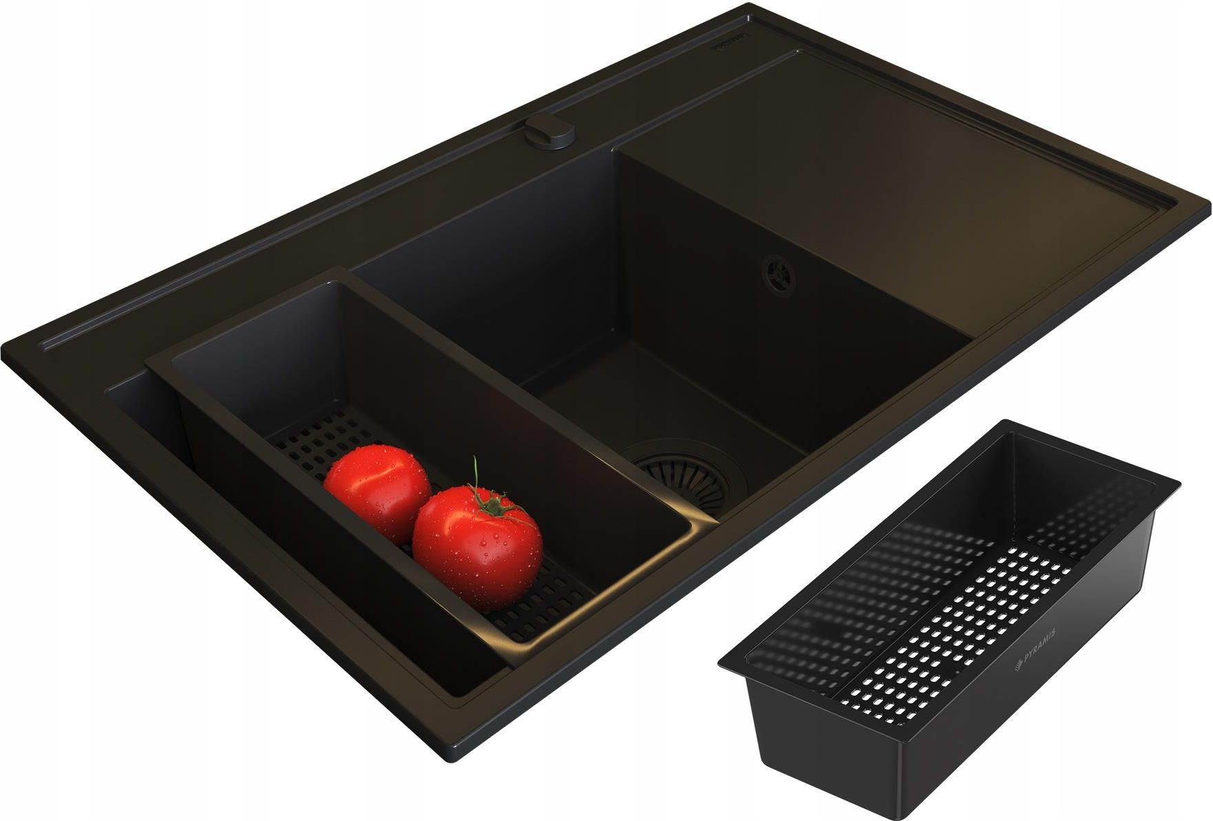 ZLEW GRANITOWY PYRAMIS CAMEA 79x50 BLACK EDITION MAT LEWY + GRATIS WKŁADKA ZESTAW PYRAMIS BLACK EDITION Seria Black Edition to niezwykle eleganckie dodatki do każdej kuchni. Czarne wykończenie elementów prezentuje się nad wyraz stylowo i wnosi nutę nowoczesności do pomieszczenia. Gustowne komponenty tworzą ponadczasowy i niebywale designerski projekt, który dopełni każdą przestrzeń kuchenną. 1️⃣JEDNOKOMOROWY ZLEWOZMYWAK GRANITOWY Z OCIEKACZEM CAMEA 79x50VOLCANO (CZARNY MAT) LEWA KOMORA BLACK EDITION 2️⃣WKŁADKA OCIEKOWA BLACK EDITION 3️⃣SYFON AUTOMATYCZNY PURE BLACK 1️⃣JEDNOKOMOROWY ZLEWOZMYWAK GRANITOWY Z OCIEKACZEM CAMEA 79x50 LEWA KOMORA VOLCANO (czarny mat) BLACK EDITION Model Camea 79x50 to pyragranitowy zlewozmywak, który cieszy się dużąpopularnością ze względu na swoją trwałość, estetykę i łatwość utrzymania w czystości. Boczny ociekacz umożliwia odkładanie mokrych naczyń, nie ogranicza spływającej wody i pomaga utrzymać porządek wokół zlewu. Zlewozmywak Camea 79x50 posiada wygodną (49cmx38cm) i głęboką (19cm) komorę o przekątnej aż 62 cm, która, nawet podczas mycia większych akcesoriów kuchennych, jest nad wyraz funkcjonalna. Zlew posiada homogeniczną powierzchnię, która zapobiega gromadzeniu się bakterii, jest odporny na wysoką temperaturę (280°C), a także przebarwienia wynikające z użytkowania domowych produktów do czyszczenia kuchni. Model Camea 79x50 posiada 5 podwiertów technologicznych, które dają możliwość zamontowania baterii czy akcesoriów w dowolnym miejscu. SPECYFIKACJA I DANE TECHNICZNE: Typ: wpuszczany Liczba komór: jedna Strona komory: lewa Ociekacz: tak Kolor: Volcano (czarny mat) BLACK EDITION Wymiary: 790 x 500 mm Wymiary komory: 490 x 380 mm Głębokość komory: 190 mm Średnica odpływu: 92 mm Materiał wykonania: 80% kwarcu naturalnego, 20% mieszanka żywic i substancji wzmacniających (PYRAGRANIT) Możliwość zabudowy w szafce od 60 cm DODATKOWO: Wkładka ociekowa BLACK EDITION Syfon automatyczny typu space saver, oszczędzający przestrzeń w kolorze czarnym z możliwością podłączenia zmywarki lub pralki SPRAWDŹ W JAKI SPOSÓB PRAWIDŁOWO WYWIERCIĆ OTWORY W ZLEWOZMYWAKU CAMEA: https://www.youtube.com/watch?v=alw50crE_xs 2️⃣WKŁADKA OCIEKOWA BLACK EDITION Wkładka ociekowa na zlewozmywak to praktyczny dodatek, który znacznie ułatwia codzienne korzystanie ze zlewu. Jej główne zadanie to zabezpieczanie blatu kuchennego przed wilgocią powstałą podczas suszenia naczyń czy artykułów spożywczych. Jest to szczególnie przydatne, gdy zmywamy naczynia ręcznie. Swoim rozmiarem i kształtem wkładka BLACK EDITION pasuje do modelu Camea 79x50, natomiast jej kolorystyka jest spójna z płaszczyzną zlewu i pozostałymi akcesoriami kuchennymi z tej serii. 3️⃣SYFON AUTOMATYCZNY PURE BLACK PURE BLACK BLACK EDITION Model posiada system antyprzelewowy, a także możliwość podłączenia pralki lub zmywarki. Dzięki budowie space server pozwala w wygodny sposób zaoszczędzić miejsce w szafce pod zlewem. Kolor syfonu jest spójny z powierzchnią zlewozmywaka, co pozwala stworzyć harmonijną płaszczyznę.