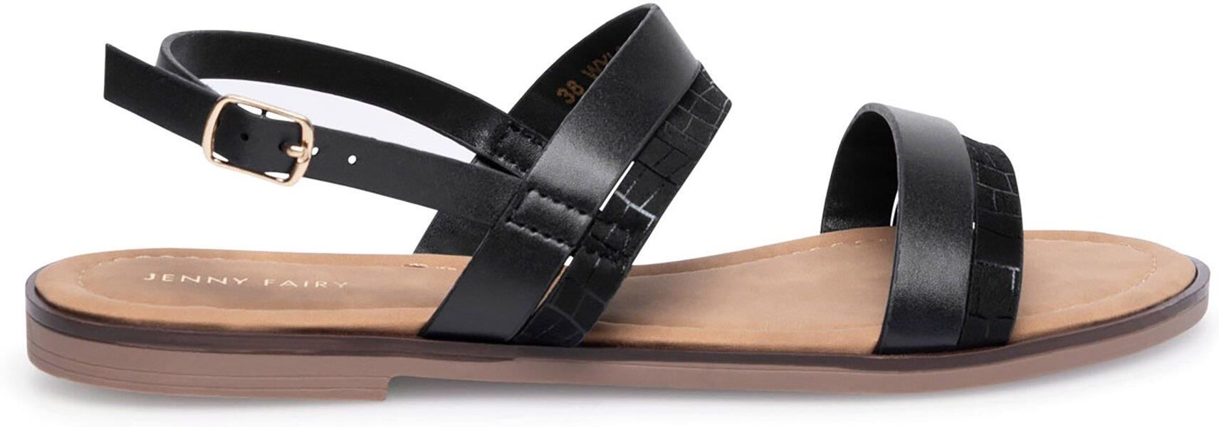Sandały Jenny Fairy to kwintesencja letniego, casualowego stylu! W kolorze ponadczasowej czerni, wykonane z wytrzymałego syntetyku, sprawdzą się zarówno podczas spacerów po mieście, jak i na wieczorne wyjścia. Płaski obcas gwarantuje niezrównany komfort na każdym kroku, a praktyczne zapięcie na sprzączkę pozwoli dopasować buty idealnie do stopy. Te sandały to must-have w garderobie każdej kobiety ceniącej połączenie wygody z modnym designem! Masz już te buty? Nie?! Marka Jenny w każdej swojej kolekcji serwuje śmietankę ze świata trendów w wyjątkowej oprawie! Jenny od lat w swych projektach obuwia podąża za najgorętszymi kierunkami ze świata fashion i inspiruje się największymi przebojami z wybiegów mody. To, co wyróżnia buty marki Jenny to przede wszystkim odważne kolory, oryginalne połączenie materiałów oraz innowacyjne wykończenia. W butach Jenny zachwycisz przy każdej okazji, a w bogatej ofercie marki znajdziesz zarówno eleganckie i klasyczne modele na ważne uroczystości oraz modne, i oryginalne buty na co dzień czy imprezę. Brakuje Ci jeszcze tylko torebki? W kolekcji Jenny czekają na Ciebie perełki, które zabierzesz ze sobą w każde miejsce. Tylko którą wybrać?