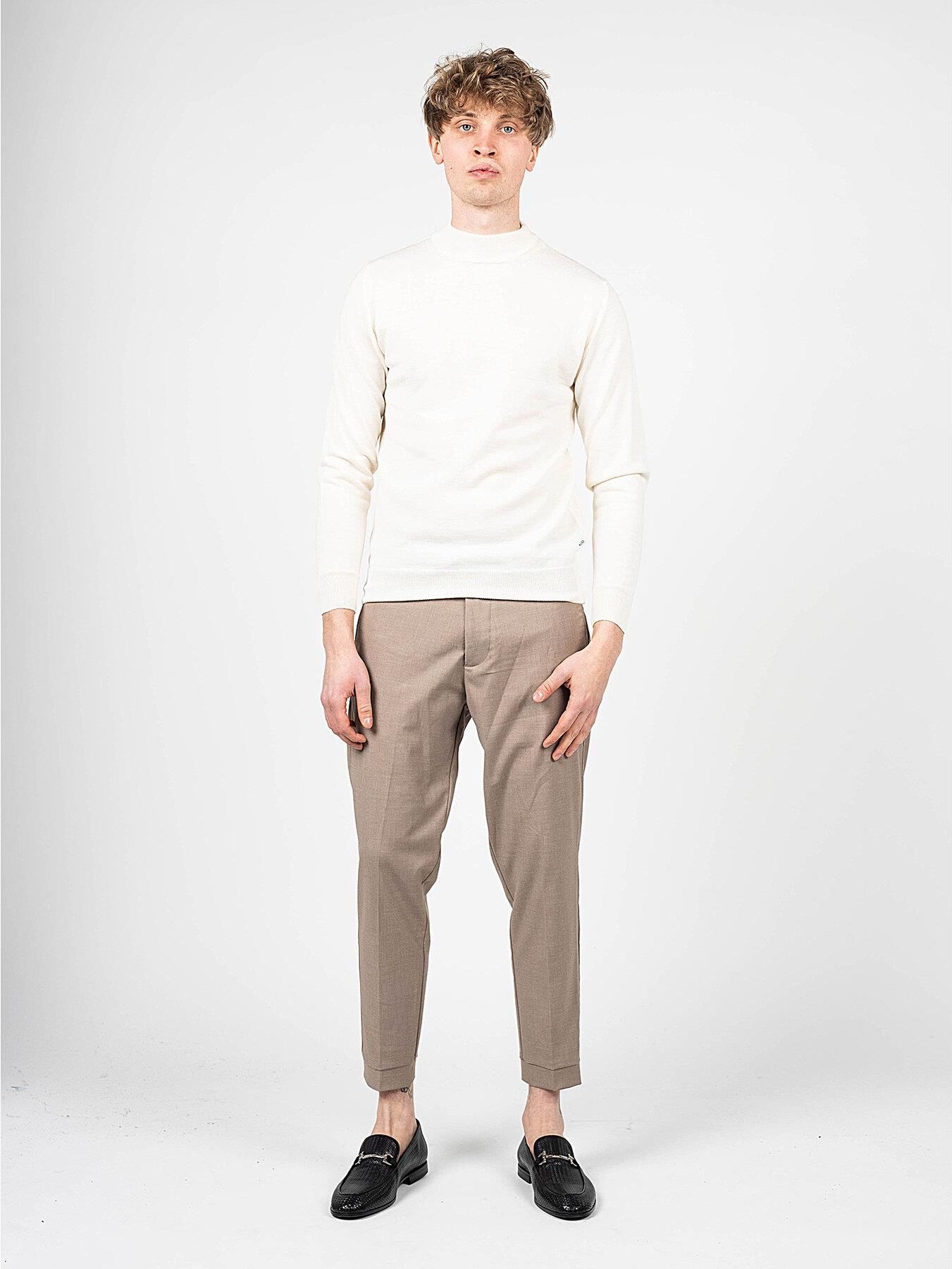 Prosty fason Okrągły dekolt Dekolt, rękawy oraz dół zakończone ściągaczem Z lewej strony firmowa wszywka Wykonany z wysokiej jakości dzianiny z dodatkiem wełny Wyprodukowano we Włoszech