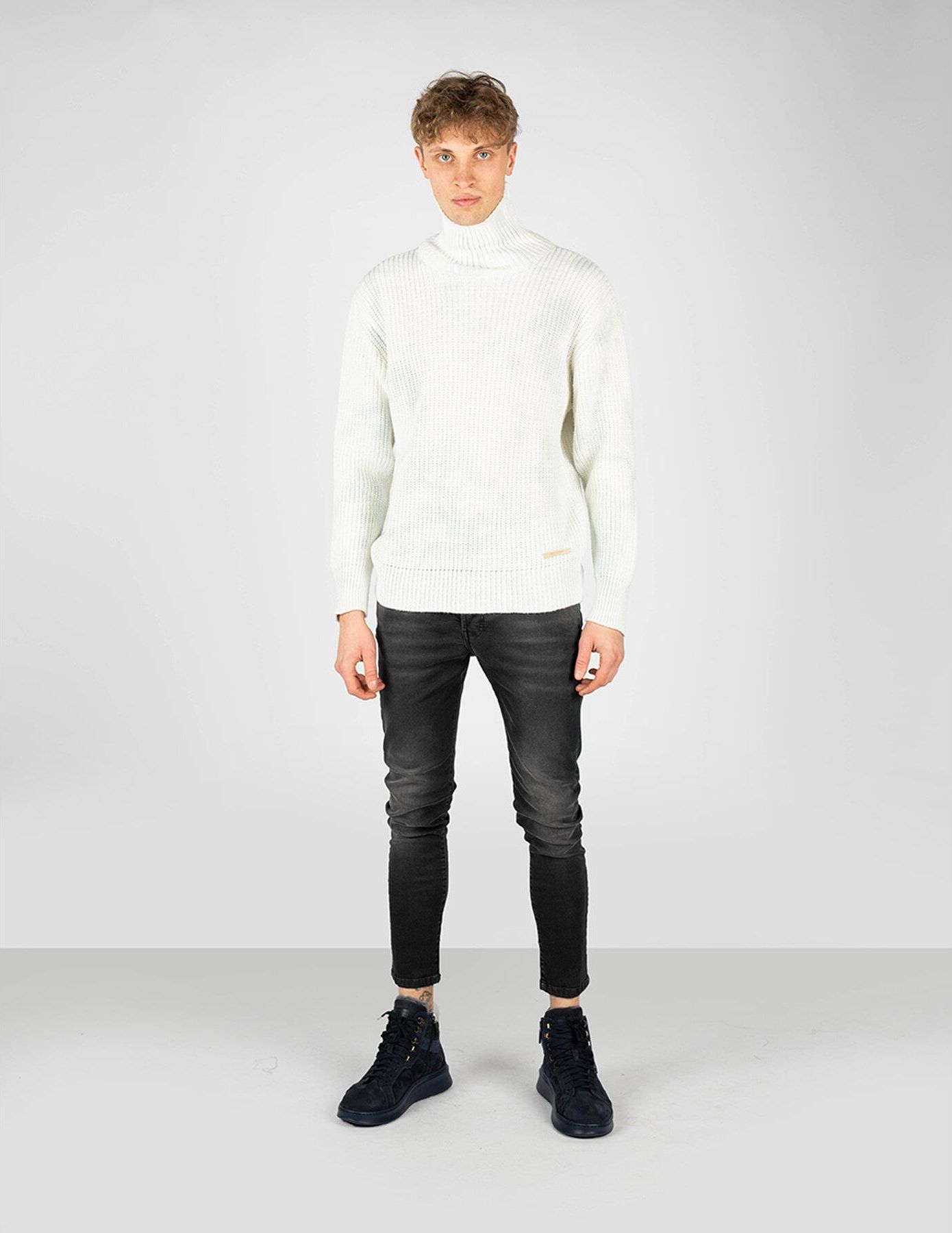 Prosty fason Z golfem Rękawy oraz dół zakończone ściągaczem Z nieregularnym wzorem Z lewej strony firmowa naszywka Wykonany z wysokiej jakości dzianiny z domieszką wełny Wyprodukowano we Włoszech