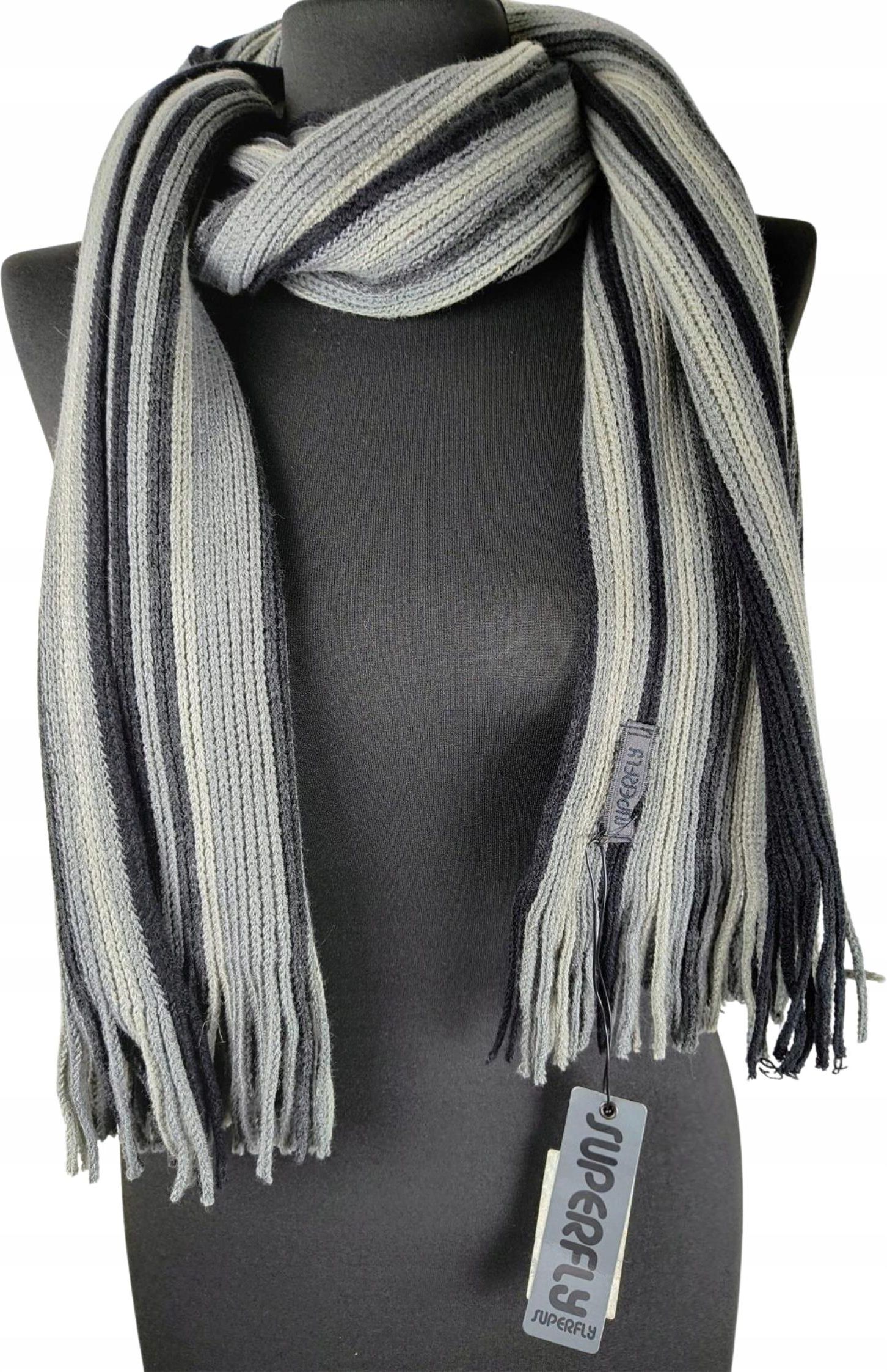 SZALIK W KOLORACH SZARYCH MARKI SUPERFLY Skład: 100% akryl Długość: 180 cm Szerokość: 42 cm