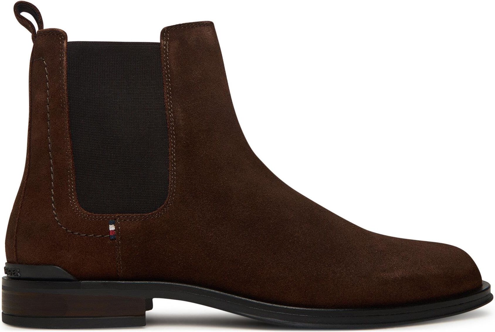 Dodaj do swojej garderoby stylowe męskie sztyblety od Tommy Hilfiger! Wykonane z wysokiej jakości zamszu, buty te zachwycają elegancją i trwałością. Wygodna wkładka z imitacji skóry podnosi komfort noszenia, dzięki czemu idealnie sprawdzą się podczas długich dni. Gumowy klin w cholewce ułatwia zakładanie i zapewnia lepsze dopasowanie do stopy, dodając jednocześnie charakteru całemu designowi. Te sztyblety to niezawodny wybór dla mężczyzn ceniących połączenie klasy i wygody na co dzień!