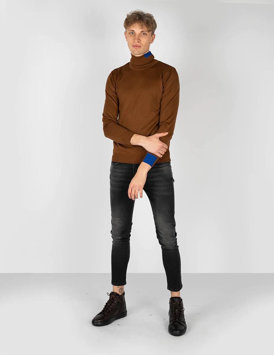 Marka: Takeshy Kurosawa | Numer artykułu: 83158| Dolcevita Intarsio | Materiał : 50% Wełna 50% Akryl | Kolor : Brązowy | Styl: Regular Fit | Rozmiar: M
