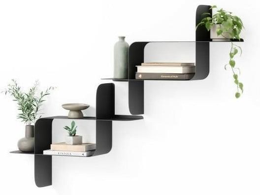 UMBRA zestaw 2 półek ściennych MONTAGE czarny. Eeleganckie i funkcjonalne rozwiązanie, które doda charakteru każdej przestrzeni. Wykonana w 100% ze stali, łączy nowoczesne wzornictwo z teksturowanym, czarnym wykończeniem, dzięki czemu świetnie komponuje się z różnymi stylami wnętrz. Geometryczna forma przyciąga wzrok i sprawia, że idealnie nadaje się do eksponowania książek, roślin czy dekoracji. Półka jest łatwa w montażu i może być zamontowana zarówno w pionie, jak i poziomie, oferując dużą elastyczność aranżacyjną. Zestaw zawiera dwie półki, które można dowolnie łączyć, tworząc spersonalizowaną dekorację ścienną. Wymiary: wys. 61 cm / szer. 47 cm / gł. 15 cm Waga brutto: 6,5 kg. Wysokość 15 cmSzerokość 47 cmGłębokość 61 cm