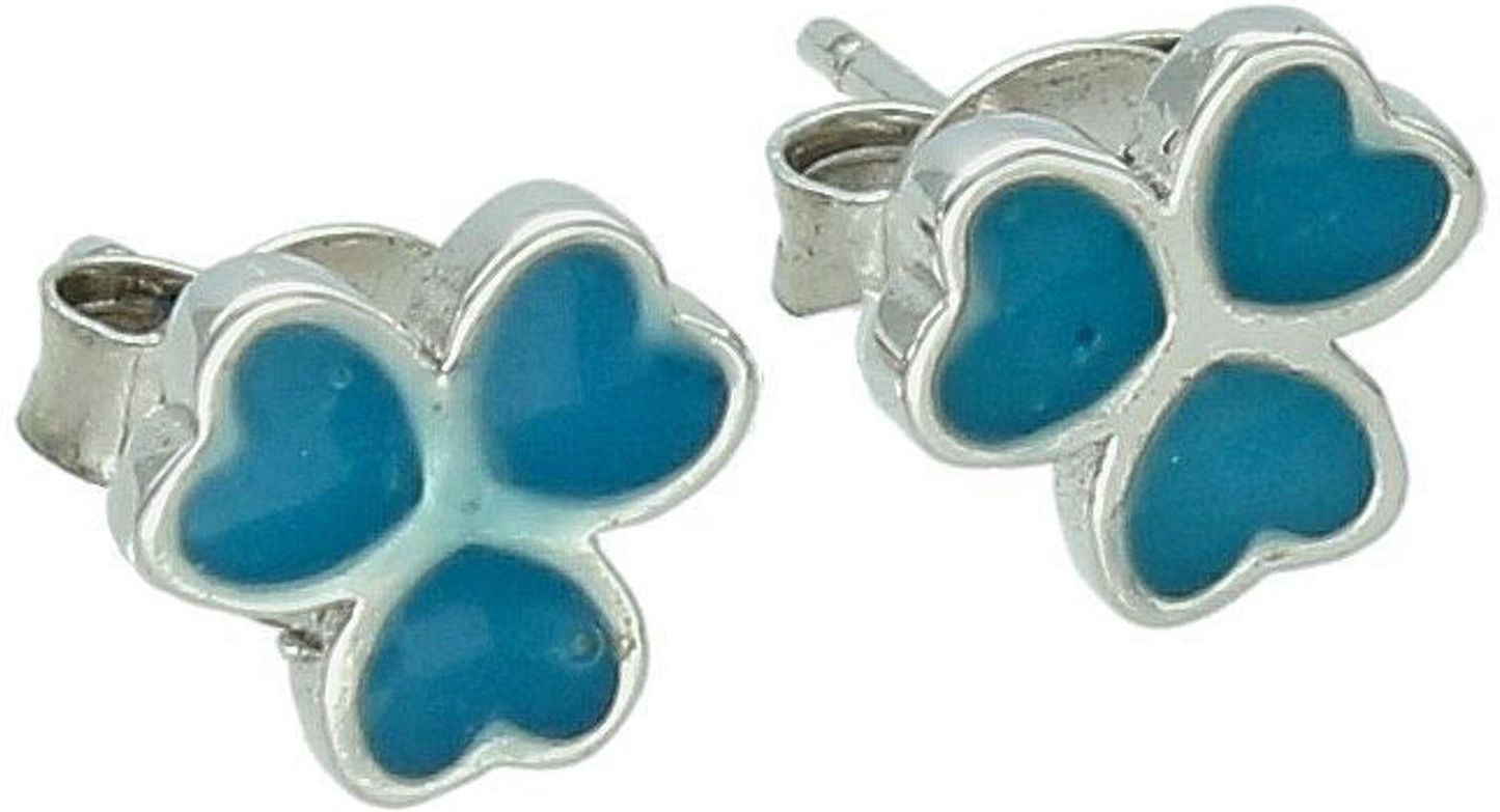 Kolczyki srebrne niebieskie koniczynki, próba 925. Srebrne kolczyki zostały wykonane z najwyższej jakości srebra próby 925. Kolczyki w formie koniczynek, ozdobione kolorową emalią. Srebrne kolczyki posiadają bardzo wygodne i bezpieczne zapięcie na sztyft, które bardzo łatwo się zakłada. Nasze kolczyki są wykonane z dbałością o każdy szczegół i detal. Srebrne kolczyki są także bardzo oryginalne i wykonane w noszeniu. Srebrne Kolczyki to biżuteria lubiana przez kobiety, rozmaitość wzorów i różnorodność kolorów sprawia że każda z kobiet znajdzie coś wyjątkowego dla siebie. Damska srebrna biżuteria będzie idealnym pomysłem na prezent. Wielkość kolczyków ok. : 0,7 cm Waga kolczyków ok. : 1,20 gram