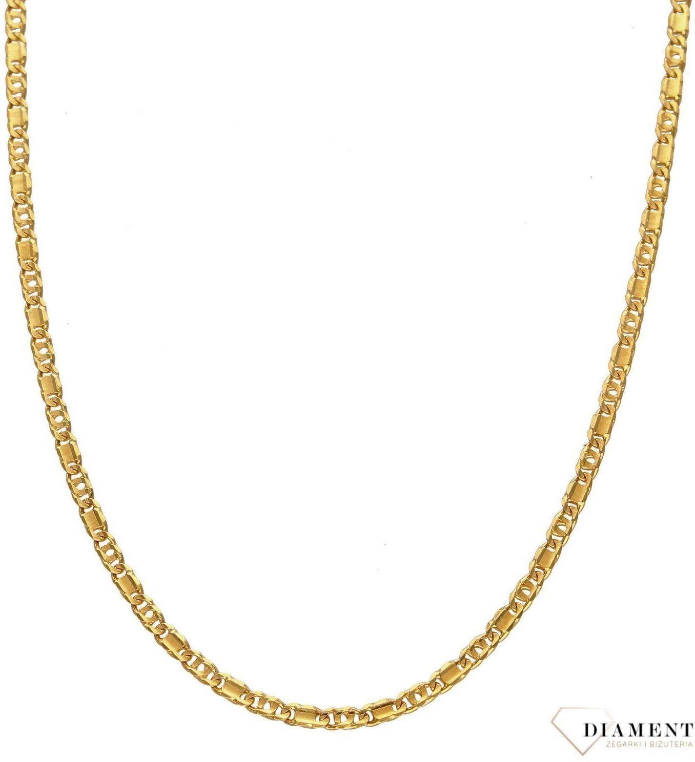 Klasyczny i uniwersalny łańcuszek, wykonany z żółtego złota próby 585 o wadze około 5,65 g. Łańcuszki to uniwersalne dodatki, które sprawdzają się na każdą okazję i dla kobiet w każdym wieku. Złoty łańcuszek jest uniwersalnym dodatkiem również dla mężczyzny. Piękny grawer na łańcuszku dodaje uroku i blasku. Wykonany z największą starannością i dbałością o każdy szczegół. Biżuterię można zestawić z innymi dodatkami dostępnymi w naszej ofercie, kolczykami, wisiorkiem lub innymi łańcuszkami. Uniwersalna biżuteria, która sprawdzi się jako niezwykle ponadczasowy dodatek do każdej stylizacji. Złota biżuteria dostępna w naszym sklepie to połączenie klasy, stylu oraz elegancji. Starannie wyselekcjonowane dodatki zachwycają wysoką jakością użytych materiałów, dbałością o każdy, nawet najmniejszy szczegół oraz niebywałą precyzją wykonania. Stworzone z myślą o każdej kobiecie, doskonale prezentują się w każdych warunkach. Zapraszamy do zapoznania się z pozostałą częścią naszej wyjątkowej kolekcji. Sprawdź pozostałe łańcuszki! > Złote łańcuszki Stwórz komplet! > Złote zawieszki > Złote bransoletki > Złote naszyjnik > Złote kolczyki > Złote pierścionki Nasz sklep internetowy ze złotą biżuterią Diament jest autoryzowanym dystrybutorem marki. Cała kolekcja złotej biżuterii Diament zakupiona w naszym sklepie posiadają 2 letnią gwarancję i zapakowane są w oryginalne opakowanie.