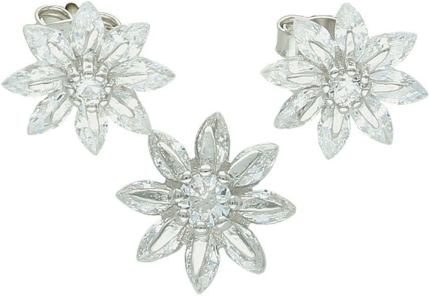 Komplet Srebrny z Cyrkoniami w Kształcie Kwiatków – DIA-KPL-13451-925 | Próba 925 Kleczew