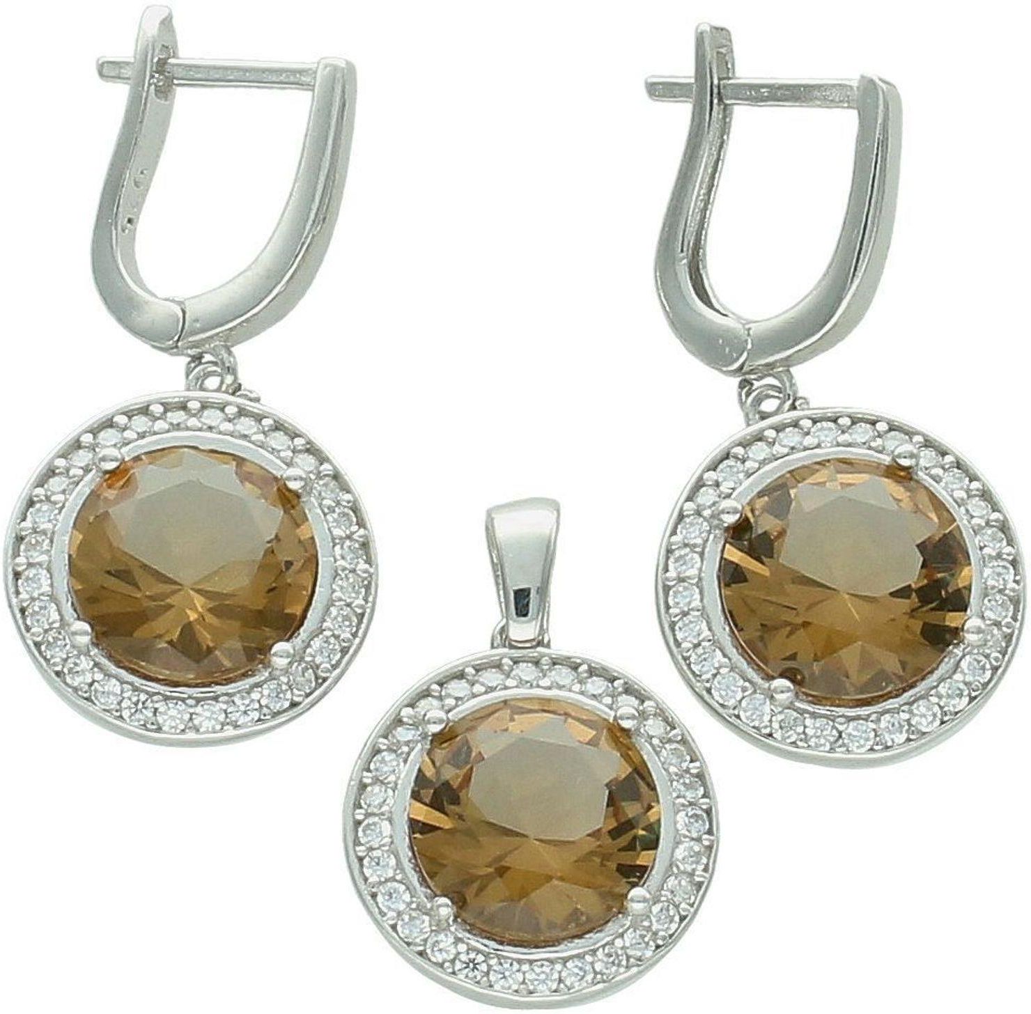 Komplet Srebrny z Żółto-Pomarańczową Cyrkonią i Białymi Kamieniami – DIA-KPL-13458-925 | Próba 925 Kleczew