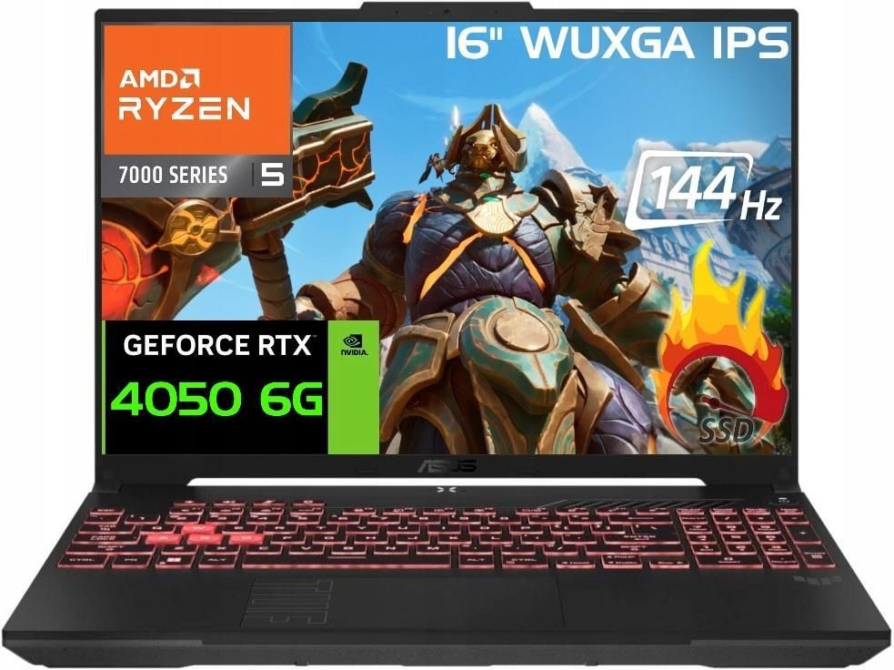 ASUS TUF Gaming A16 FA607NU-R5165 / AMD Ryzen 5 7535HS / 16" WUXGA 144Hz / DDR5 32GB 4800MHz / 2x512GB SSD NVMe M.2 / Nvidia Geforce RTX 4050 6G GDDR6 ASUS TUF Gaming A16 TUF Gaming A16 oferuje precyzję ruchu, większy ekran, szybkie odświeżanie, zaawansowany system chłodzenia i wytrzymałość klasy …