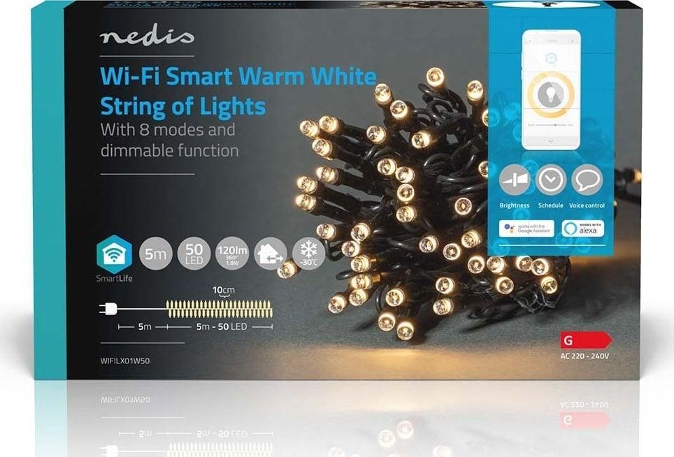 Nedis Oświetlenie Dekoracyjne Lekki Łańcuch Do Dekoracji Biały 50 Lamp Led 1,81 W G (Wifilx01W50) Kleczew