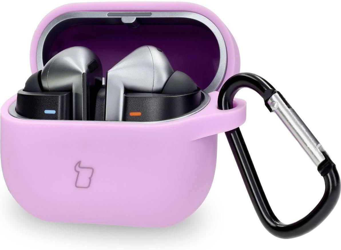 Bizon Silikonowe etui z karabińczykiem Case Headphone Silicone do Samsung Galaxy Buds 3/3 Pro jasnofioletowe Kleszczele