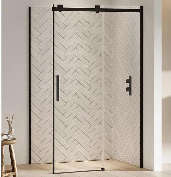 Kabina prysznicowa New Trendy Softi Black samodomykająca drzwi przesuwne profil czarny Szerokość drzwi: 140 cm, Szerokość ścianki: 120 cm Kleszczele