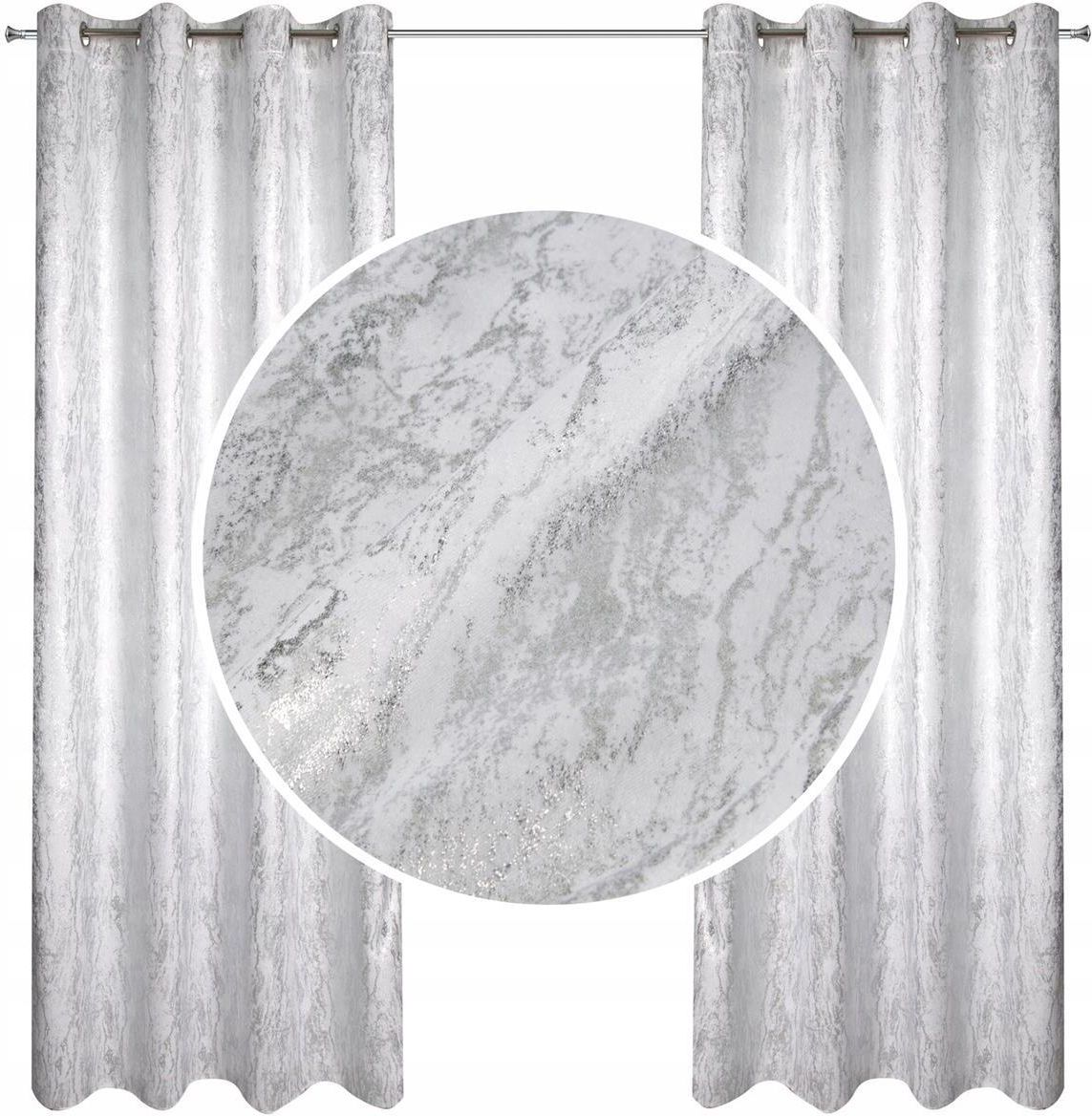Eurofirany Zasłona Gotowa Na Przelotkach Elise 140X250 Biała Srebrna Marmurek Kłobuck