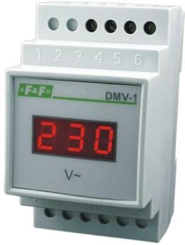 CYFROWE. Jednofazowe. Wskaźniki zasilania. Przeznaczenie: Wskaźnik napięcia DMV-1 służy do ciągłego odczytu wartości napięcia sieci jednofazowej. Działanie: pomiar napięcia fazowego. obwód pomiarowy jest jednocześnie obwodem zasilania urządzenia. wskaźnik z oznaczeniem TrueRMS wyposażony w przetwornik wartości skutecznej podaje poprawną wartość napięcia przy przebiegach odkształconych. Dane techniczne: zasilanie 100÷300V AC częstotliwość zasilania 45÷55Hz zakres wskazań 100÷300V dokładność wskazań DMV-1 1%; DMV-1 TrueRMS 0,5% wyświetlacz segmentowy LED 10×6mm pobór mocy 4W temperatura pracy -25÷50°C przyłącze zaciski śrubowe 2,5mm² wymiary 3 moduły (52,5mm) montaż na szynie 35mm