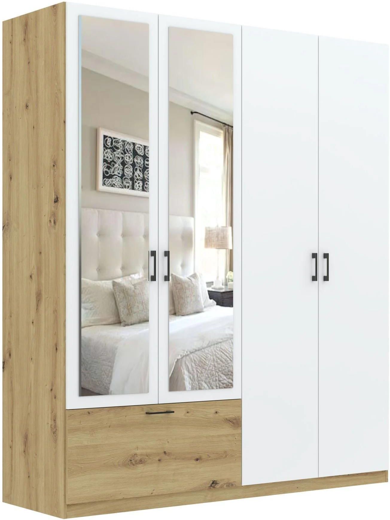 Intermeble Szafa Alta 4D1S Dąb Artisan Biała Z Lustrem Kłobuck