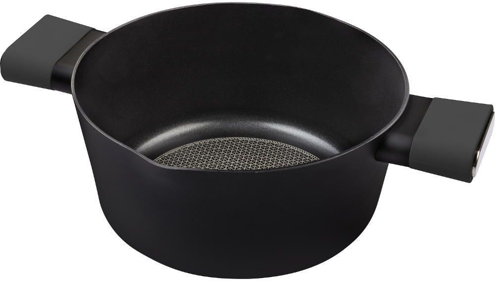 Rondel Lamart POELE LT1225 z Pokrywą 24 cm Lamart LT1225 to wysokiej jakości rondel, który został wykonany z wytrzymałego aluminium. Nieprzywierająca powłoka ułatwia przygotowywanie potraw, ograniczając ryzyko ich przypalenia. Natomiast pokrywka z otworem na parę pozwala lepiej kontrolować proces gotowania, a silikonowa krawędź gwarantuje idealne dopasowanie pokrywki do garnka. Do tego solidne uchwyty z sylikonową powłoką, dzięki której się nie nagrzewają. Naczynie jest doskonale wykonane, dzięki czemu jest nie tylko trwałe, ale i dobrze się prezentuje. Garnek nadaje się na wszystkie typy płyt grzewczych i można go myć w zmywarce. Nieprzywierająca powłoka | Nienagrzewające się uchwyty | Pokrywka z silikonową krawędzią Parametry techniczne Producent: Lamart Model: LT1225 Wymiary: średnica 24 cm Pojemność: 4,3 l Materiał: aluminium/bakelit Kolor: czarny/szary Pokrywka: szklana z silikonową krawędzią i otworem na parę Dodatkowo: można myć w zmywarce, uchwyty zabezpieczone silikonem, grube dno, powierzchnia non stick, do użytku na wszystkich rodzajach płyt grzewczych (gazowa, ceramiczna i indukcyjna), nie zawiera PFOA Zdrowe gotowanie Rondel Lamart LT1225 został wykonany z materiałów, które nie zawierają PFOA, co oznacza, że nawet przy ich przegrzaniu nie uwalniają się żadne toksyczne substancje. To oznacza, że nawet przy długim gotowaniu do potraw nie przedostają się żadne szkodliwe związki, a Ty możesz bez obaw i całkowicie bezpiecznie przygotowywać jedzenie dla całej rodziny. Wygodne gotowanie Rondel Lamart LT1225 o średnicy 24 cm, co zapewnia 4,3 l pojemności idealnie nadaje się do przygotowywania potraw dla jednej osoby, pary lub mniejszych posiłków dla rodziny. Grube dno i wysokiej jakości materiały zapewniają dobre przewodzenie ciepła, a to oznacza, że wnętrze garnka nagrzewa się szybko i co ważniejsze równomiernie. Skraca to czas przygotowywania posiłków, co przekłada się na wygodę domowników i zapewnia większą oszczędność energii. Komfort użytkownika Duże, solidne uchwyty ułatwiają przenoszenie pełnego naczynia, a wykończenie z silikonu sprawia, że się one nie nagrzewają, ograniczając ryzyko poparzenia. Specjalny kształt garnka ułatwia wylewanie wody, dzięki czemu garnek jest wygodny w codziennym użytkowaniu. Rondel Lamart LT1225 może być używany na wszystkich typach płyt grzewczych (gazowa, ceramiczna, indukcyjna). Łatwa konserwacja Garnek Lamart LT1225 ma nieprzywierającą powłokę, która ogranicza ryzyko przypalenia potrawy, ułatwiając gotowanie. Dodatkowo sprawia to, że czyszczenie rondla i utrzymanie go w doskonałym stanie jest dużo łatwiejsze. Szklaną pokrywkę wystarczy dokładnie umyć, aby zawsze lśniła czystością. Co więcej, garnek można szybko i wygodnie umyć w zmywarce, oszczędzając czas i energię. Doskonała jakość Wysokiej klasy aluminium i bakelit oraz niezwykle trwałe szkło, z której wykonana jest pokrywka to gwarancja trwałości i wytrzymałości. Rondel Lamart LT1225 jest starannie wykonany, dzięki czemu odznacza się wysoką odpornością termiczną, a dodatkowo jest odporny na przypadkowe uszkodzenia, więc posłuży domownikom w doskonałym stanie przez długi czas.