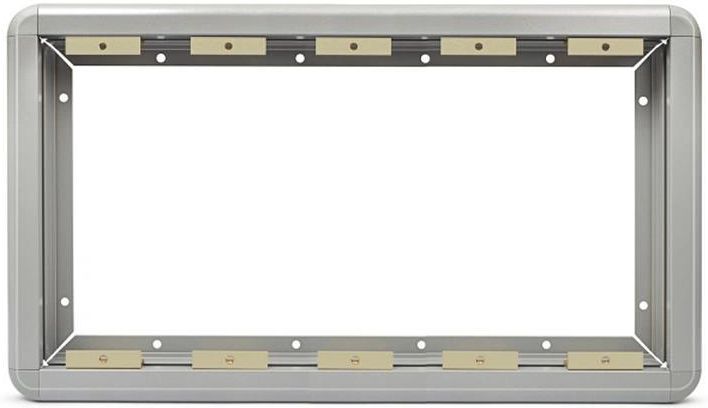 Ramka podtynkowa 03X0305A MIFON . Wykonana z aluminium, odporna na korozje, w kolorze srebrnym metalicznym. Tworzywo poliamidowe z dodatkiem włókna szklanego zastosowane w narożnikach ramki zwiększa wytrzymałość oraz odpornośc na niskie temperatury. Właściwości 03X0305A MIFON Ramka podtynkowa przenaczona do montazu pięciu kaset jednorzędowych Kod produktu: 03X0305A Kolor: srebrny metaliczny Wymiary zewnętrzne: 420 x 240 mm Rozmiar otworu: 210 x 395 x 30 mm