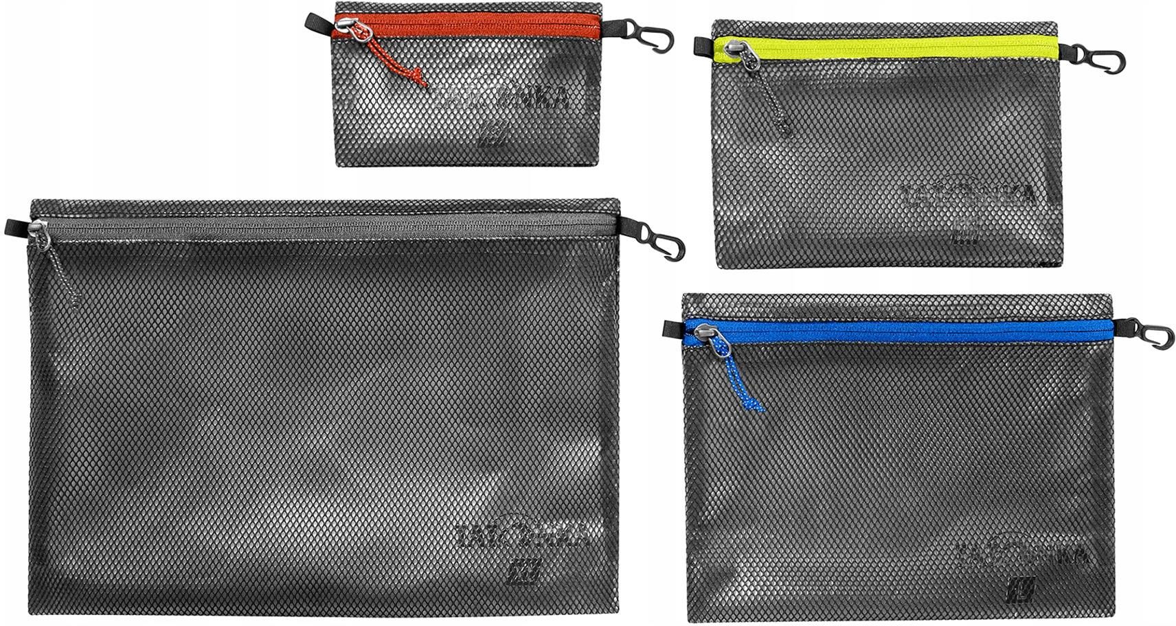 Organizer turystyczny Tatonka Zip Pouch Set IV 4 szt. black OS Zestaw 4 organizerów Tatonka Zip Pouch Set: 10x15cm, 15x20cm, 20x25cm, 25x35cm Osobno możemy trzymać czystą bieliznę, a osobno rzeczy do prania, osobno sprzęt kuchenny oraz kosmetyki. Pokrowce wykorzystasz tak, jak chcesz. Według swoich preferencji wybierz również rozmiar worka — albo mały na drobiazgi — na przykład podróżną elektronikę, albo większe na odzież. TATONKA Zip Pouch Set - zestaw saszetek podróżnych - najważniejsze informacje saszetki zamykane na suwaki błyskawiczne; po bokach zaczepy wygodne do przytroczenia lub podwieszenia; Pokrowce zostały wykonane z wytrzymałego materiału Laminated Square Mesh; półtransparentny materiał pozwalający kontrolować zawartość; idealnie sprawdzi się do przechowywania drobnych akcesoriów bagażu; w zestawie cztery różne pojemności saszetek. Parametry techniczne: wymiary czerwony zamek S: 10 x 15 cm wymiary żółty zamek M: 15 x 20 cm wymiary niebieski zamek L: 20 x 25 cm wymiary szary zamek XL: 25 x 35 cm waga: 230 g (zestaw) materiał: Laminated Square Mesh Tatonka to niemiecki producent sprzętu i odzieży outdoorowej o rodzinnych podstawach i tradycjach. Ich produkty ze względu na wysoką jakość wykonania oraz używanych materiałów, a także ciekawe i praktyczne projekty cieszą się wśród klientów dużym uznaniem. Marka od wielu lat znajduje się w czołówce producentów odzieży i sprzętu outdoorowego, szcególnie bagażowego. Tatonka to sprzęt bardziej użytkowy, funkcjonalny, mocny i trwały, aniżeli sprzęt ultralekki. Sprzęt Tatonka ceniony jest przede wszystkim przez codziennych użytkowników oraz długodsytanowych podróżników. Model/kod produktu: Zip Pouch Set IV 3142.040 Kolor wiodący: Czarny Marka: Tatonka Kraj pochodzenia marki: Niemcy Płeć: Nie dotyczy Sezon: Całoroczne Wymiary: S: 15 x 10 cm; M: 20 x 15 cm; L: 25 x 20 cm; XL: 25 x 35 cm Sport: Turystyka Przyjazność środowisku: PFC-Free Waga: S: 30 g; M: 40 g; L: 60 g; XL: 100 g Rodzaj zapięcia: Zamek Wodoodporność: Tak Materiał: Poliester, Poliuretan Rozmiar: OS, Uni