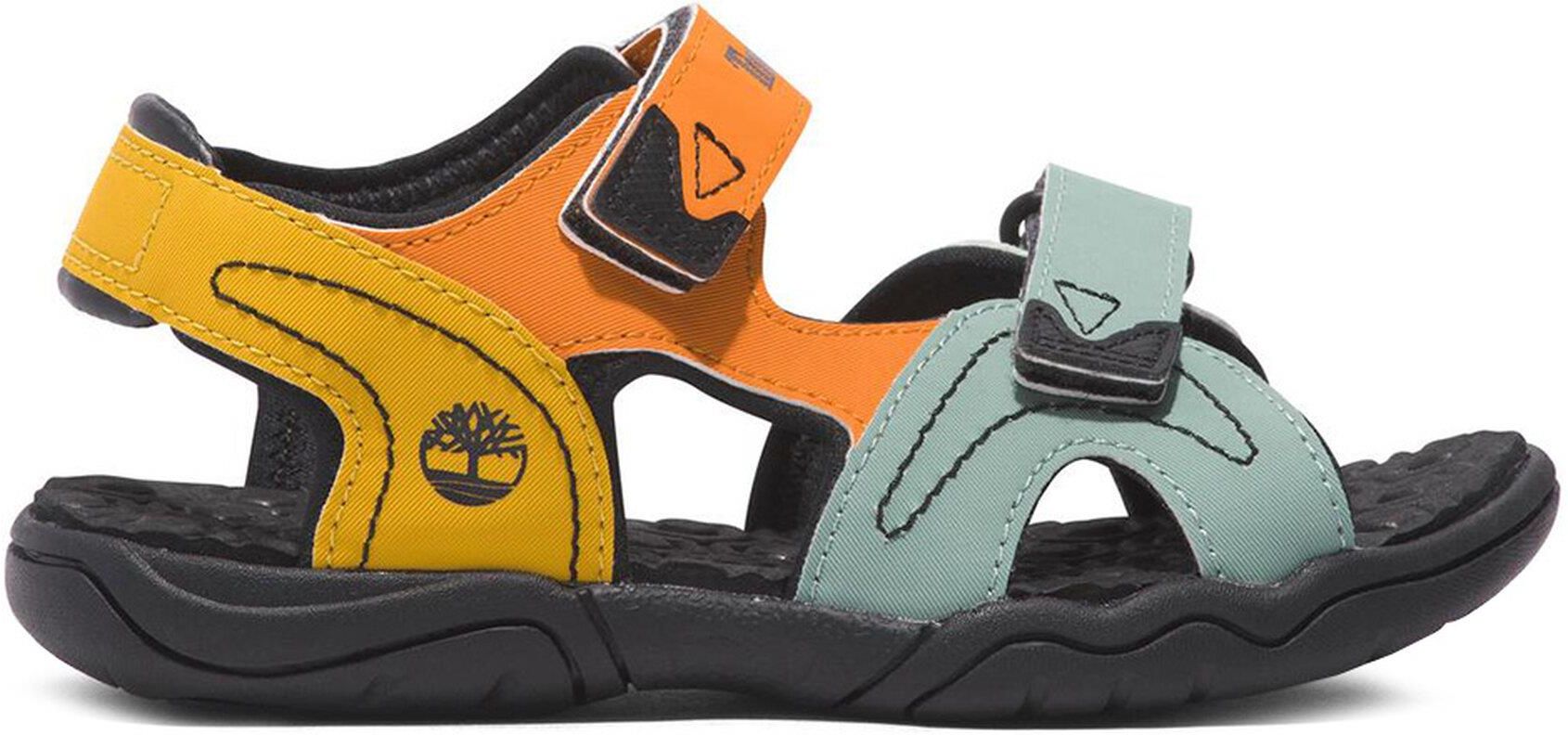 Oferujemy dziecięce sandały marki Timberland wykonane z wytrzymałego i przepuszczalnego powietrze materiału ReBOTL™ z przetworzonych butelek PET. Przyczepna podeszwa zewnętrzna zapewnia stabilność na każdym kroku, a podwójne zapięcie na rzep idealne dopasowanie do stopy. Wkładka z delikatnymi wypustkami oferuje dodatkowy komfort. Podeszwa środkowa z pianki EVA gwarantuje doskonałą amortyzację. To idealny wybór na letnie dni!
