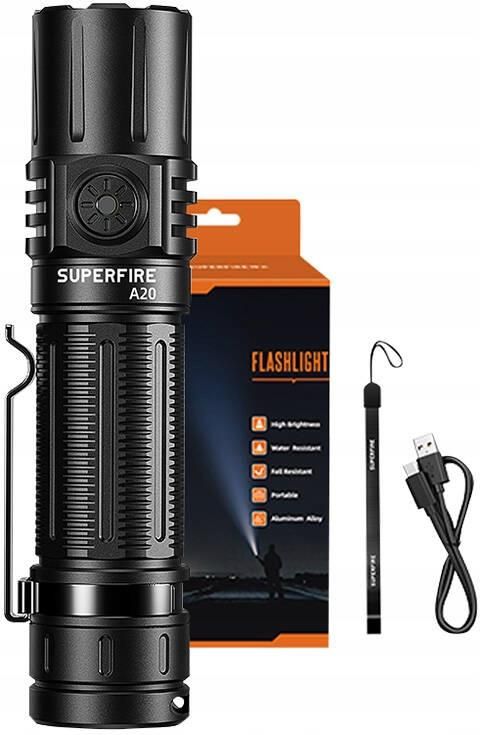 Superfire Latarka Taktyczna Wojskowa Akmulatorowa Wodoodporna Ip44 Usb-C Kłobuck
