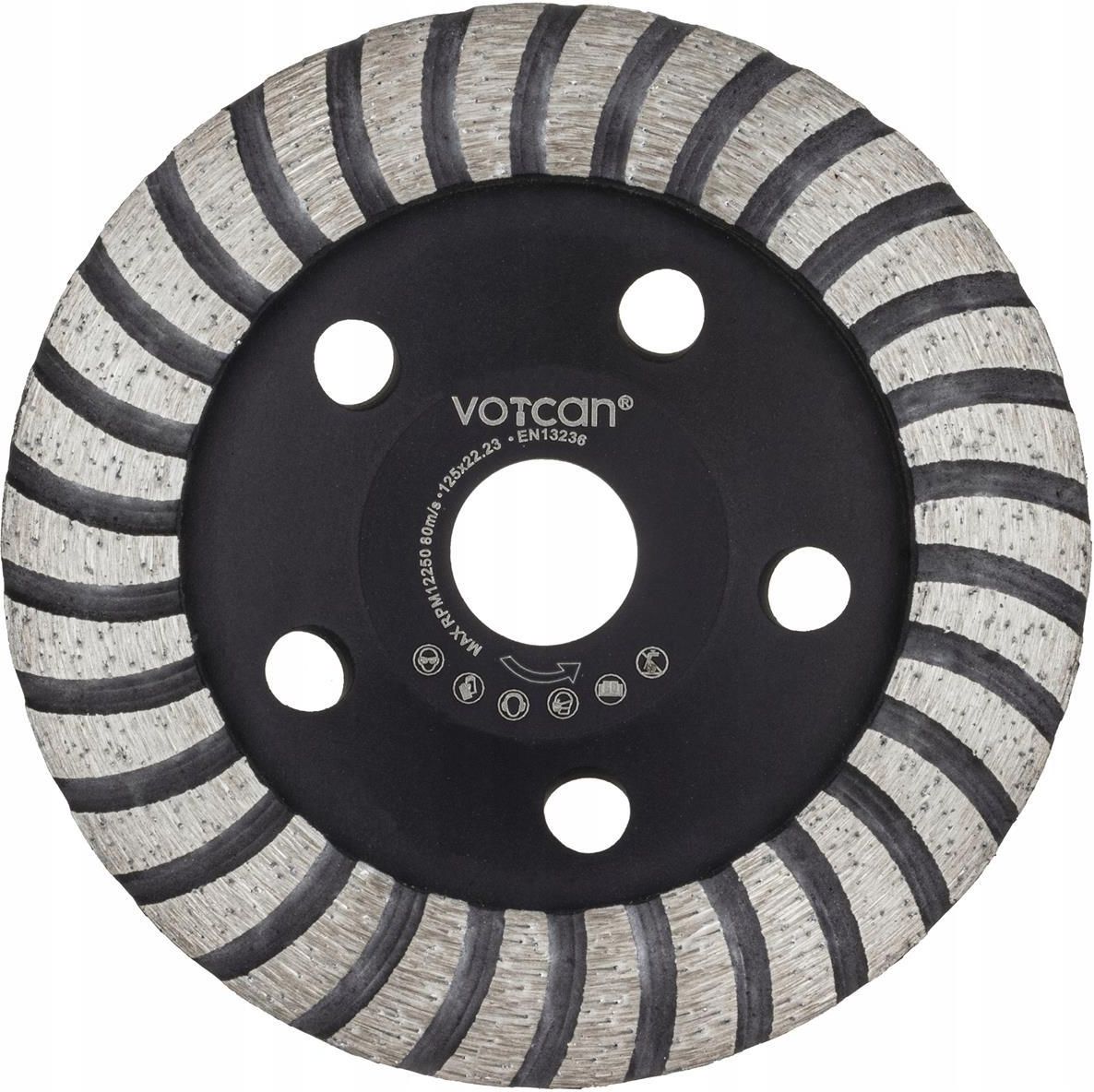 PROFEJONALNA TARCZA DIAMENTOWA GARNKOWA SEGMENTOWA FREZ DO SZLIFOWANIA BETONU 125 MM VC04000 CHARAKTERYSTYKA Specjalna ściernica diamentowa o wysokim diamencie, służy do oczyszczania i szlifowania nierówności na powierzchniach betonu, betonu licowego, cegły, kostki brukowej, klinkieru, gazobetonu, płytki ceramicznej. Diamentowa tarcza garnkowa jest przeznaczona do szlifowania powierzchni betonu przy użyciu szlifierki kątowej. Długą żywotność diamentowej tarczy garnkowej zapewniają doskonałe parametry techniczne. Nowoczesne procedury obróbki cieplnej i specjalne wykończenie powierzchni zmniejszają zużycie tarczy oraz poprawiają wytrzymałość. Diament o wysokości 5 mm pozwala na długie użytkowanie tarczy bez konieczności wymiany na nową. Tarcza idealnie nadaje się do usuwania nierówności, formowania oraz szlifowania dużych powierzchni betonu. PARAMETRY Średnica zewnętrzna : 125 mm Średnica wewnętrzna : 22,2mm Wysokość segmentu : 5 mm Ilość segmentów - 30