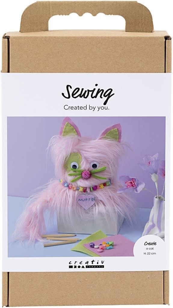 Our Creativity in a Box lets your child sew a plush cat with ears, nose and whiskers. The kit contains all the materials and instructions you need