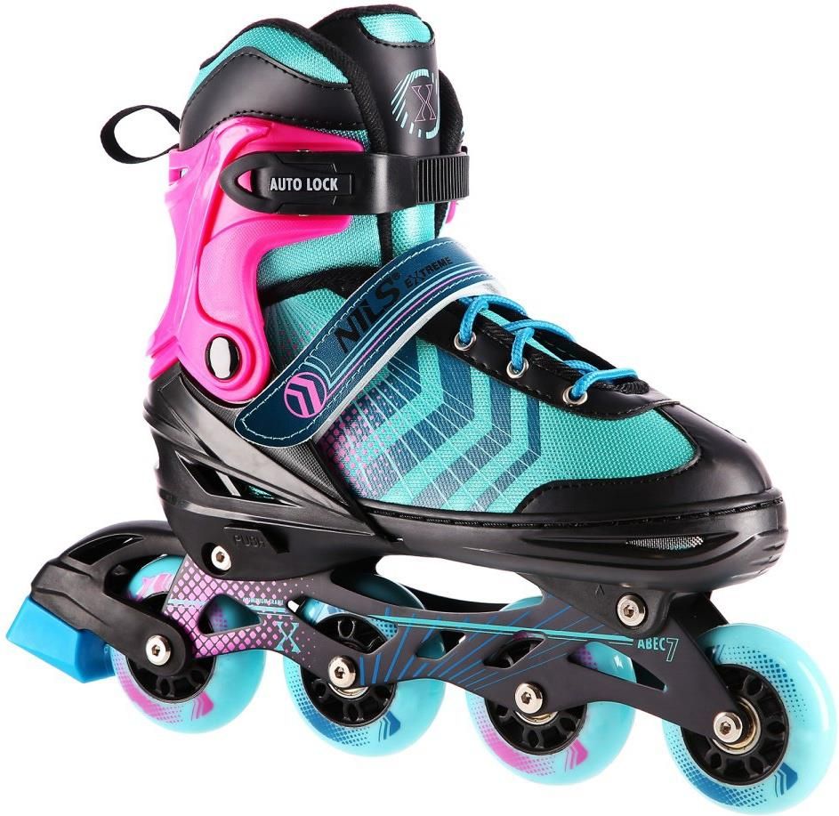 NH18192 Set Nils Extreme, to produkt przeznaczony dla pasjonatów jazdy. Oferuje 4 możliwości konfiguracji. Są to: łyżwy, łyżworolki, wrotki oraz rolko-wrotki. Dlaczego warto zdecydować się na wybór modelu NH18192 Nils Extreme? Ponieważ, pozwala on w pełni korzystać z zalet, jakie niesie z sobą gra w hokeja oraz jazda na łyżworolkach. Łyżwy NH18192 Nils Extreme, charakteryzują bardzo dobre właściwości jezdne. Jest to zasługą płóz, wykonanych z wysokogatunkowej stali nierdzewnej oraz wielouchwytowego systemu zapięć, składającego się z paska na rzep, klamry i sznurowadeł, pewnie trzymającego stopy. Wszystko to sprawia, że model ten sprawdza się dobrze w każdych warunkach, dostarczając niepowtarzalnych wrażeń z jazdy. To wygodne łyżwy hokejowe, zaprojektowane z myślą o początkujących i średniozaawansowanych użytkownikach. Ich wysoka jakość, gwarantuje trwałość i odporność na uszkodzenia mechaniczne. Łyżworolki NH18192, to czysta radość z jazdy. Dzięki możliwości przełożenia dodatkowego kółka na tylną oś łyżworolka funkcjonalnie zmienia się na rolko wrotkę. To rozwiązanie pomoże najmłodszym rolkarzom, stawiać swoje pierwsze kroki w tym sporcie. Z kolei zamontowanie dodatkowego kółka na przednią oś sprawia, że produkt zmienia się we wrotkę. Łyżworolka wyposażona jest w specjalną aluminiową płozę oraz hamulec, co zapewnia bezpieczeństwo podczas jazdy. Z kolei kółka oraz łożyska klasy ABEC7 pozwalają na mniejsze opory toczenia, czyli szybszą jazdę. Model NH18192 Nils Extreme, posiada również możliwość 4-stopniowej regulacji rozmiaru buta, pozwalającą dostosować go do potrzeb użytkownika. Jest to sposób na oszczędność czasu oraz pieniędzy. Takie rozwiązanie pozwala bowiem na przedłużenie ich żywotności, daje też możliwość korzystania z nich więcej, niż jednej osobie. Specyfikacja: But: półmiękki Wkładka: materiał EVA, pianka o dużej gęstości Długość wewnętrzna buta (mm): 245-270 Zapięcie: klamra dwusekcyjna, pasek na rzep, sznurowanie Płoza łyżwy: wysokogatunkowa stal nierdzewna Płoza łyżworolki: aluminium Maksymalne obciążenie użytkownika: 80kg Kółka: PU 64mm/82A (S) PU 70mm/82A (M) PU 72mm/82A (L) Łożyska: ABEC 7 Przycisk do regulacji rozmiaruUwagi: Nie przeznaczone do użytku komercyjnego Zgodne z normą PN-EN 13843:2009