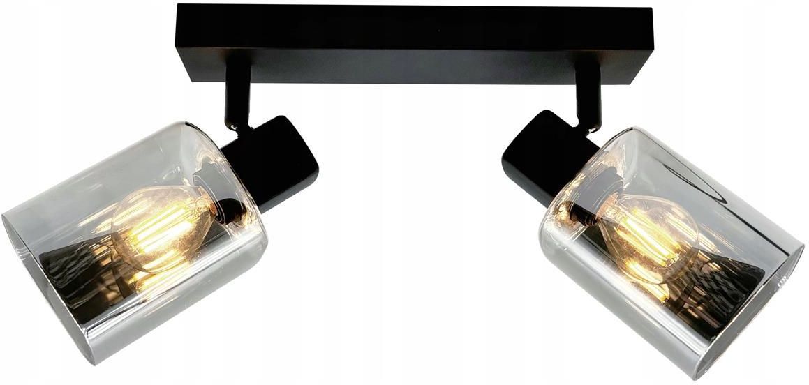 Harlow - listwa 2 płomienna czarna. 2xE14 40W. Wysokość 14cm. Szerokość 25cm. Głębokość 9cm. Klosze smokey galwanizowane