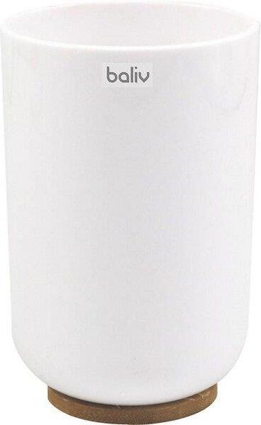 Baliv Kubek białyKubek w kolorze białym marki Baliv. Jest bardzo praktyczny i sprawdzi się doskonale w każdej łazience. Produkt powstał z wysokiej jakości tworzywa sztucznego i jest przyjemny w dotyku. Dzięki gładkiej powierzchni łatwo się go czyści. Można w nim przechowywać różne drobiazgi łazienkowe, szczoteczki do mycia zębów, grzebienie, pędzle do makijażu, ale także maszynki do golenia. Dzięki prostemu, minimalistycznemu projektowi nada pomieszczeniu elegancki wygląd.Możliwość dokupienia pozostałych akcesoriów z tej serii: mydelniczki, dozownika na mydło w płynie oraz szczotki WC.