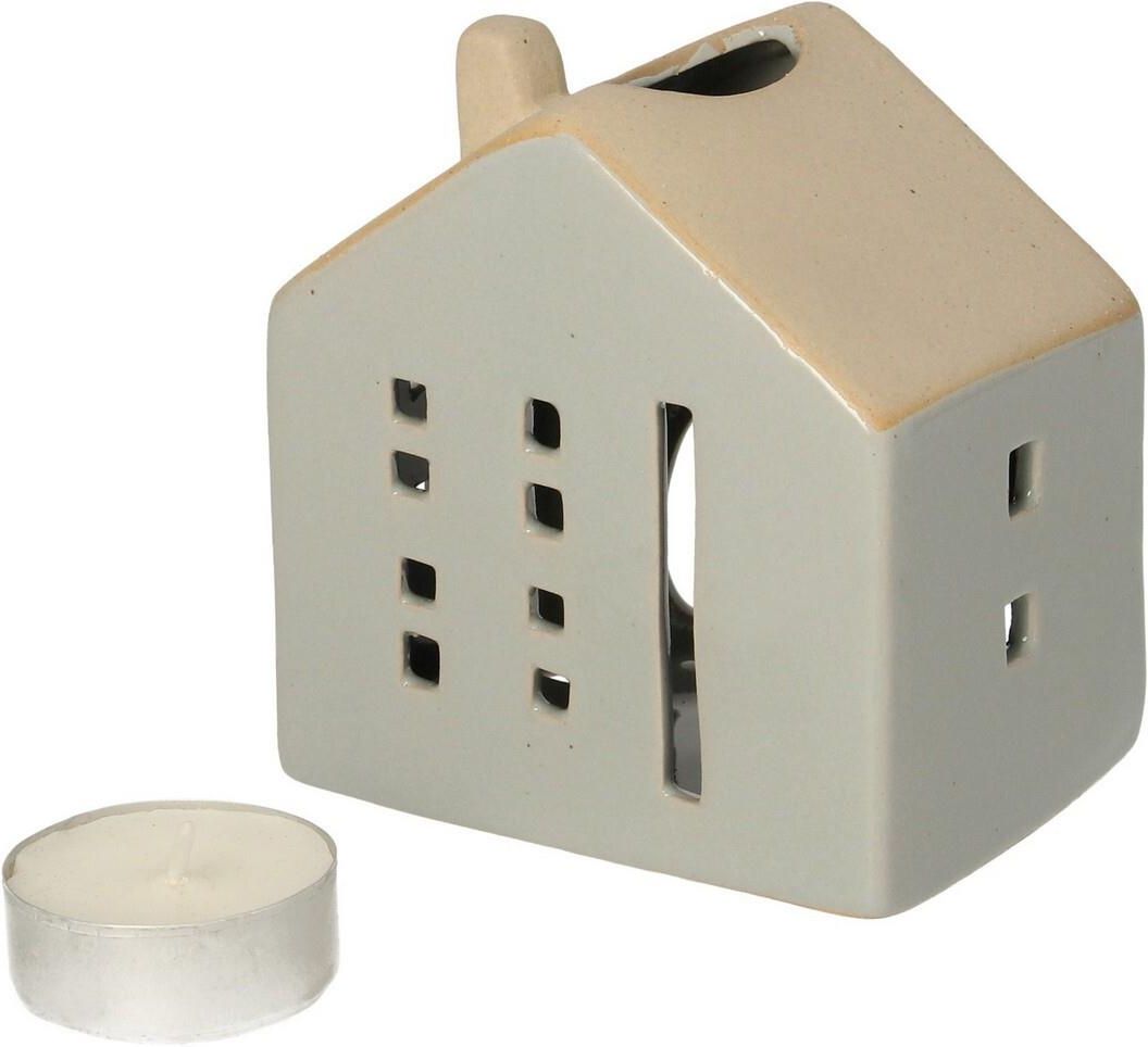 Świecznik kominek na tealighty z kamionki. Uroczy świecznik kominek o subtelnym szaro-beżowym kolorze to wspaniała świąteczna dekoracja. Wniesie przytulny nastrój i świąteczny klimat do Twojego wnętrza. Świecznik przeznaczony na tealighty wykonany został z kamionki. Ten świecznik domek efektownie się prezentuje i otula pomieszczenie ciepłym blaskiem. To wspaniały dodatek do świątecznej aranżacji, a zarazem trafiony pomysł na wyjątkowy prezent od serca. Wymiary: szer. 9 cm, dł. 7 cm, wys. 10 cm.