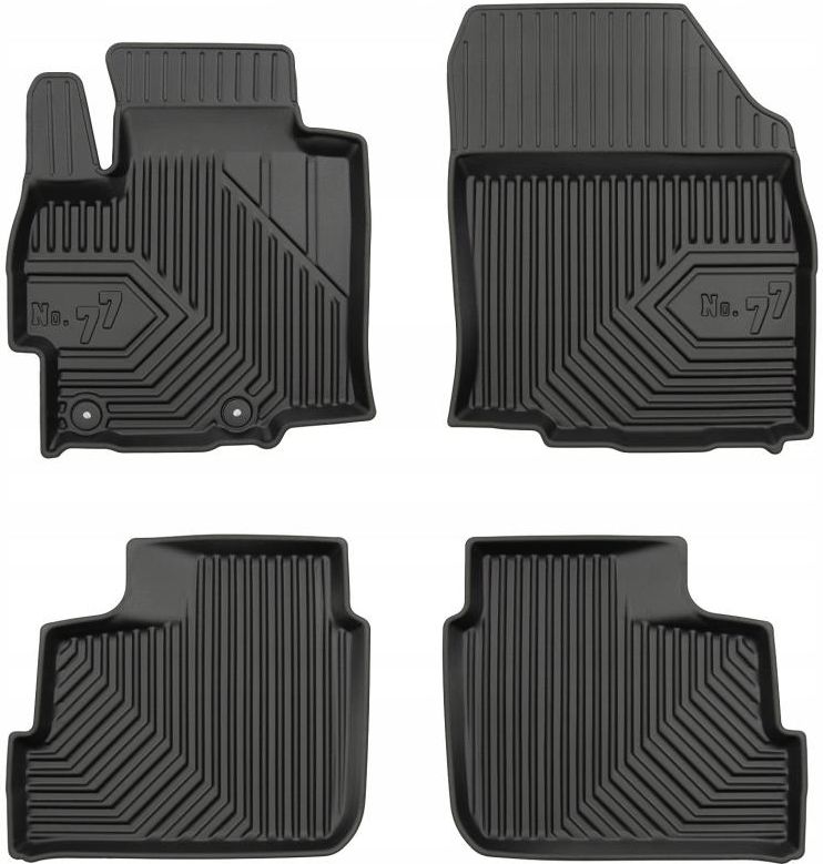 DYWANIKI GUMOWE KLASY PREMIUM Z WYSOKIEM RANTEM I WYPROFILOWANIEM, No.77! Produkt przeznaczony do MITSUBISHI SPACE STAR (2013-) Dywaniki gumowe w kolorze czarnym, dedykowane do: MITSUBISHI SPACE STAR (2013-) Do wszystkich wersji *zdjęcie obok przedstawia rzeczywisty kształt oferowanego produktu zestaw zawiera cztery gumowe dywaniki samochodowe W całości wyprodukowane w Polsce przez jednego z najbardziej cenionych producentów dywaników gumowych- Firmę FROGUM Dzięki laserowym pomiarom podczas produkcji uzyskano idealne dopasowanie do kształtu podłogi Wykonane z najwyższej jakości gumy nie zawierającej toksycznych komponentów Duża odporność na zużycie mechaniczne i warunki atmosferyczne Zachowują swoją elastyczność przy zmianach temperatur Bezzapachowe (wyczuwalny delikatny aromat waniliowy) BEZPIECZEŃSTWO I KOMFORT! Stopery mocujące eliminują możliwość przesuwania się dywaników podczas jazdy, co znacząco wpływa na bezpieczeństwo i komfort podróży JAKOŚĆ I WYTRZYMAŁOŚĆ! Specjalne wzmocnienie w dywaniku kierowcy znacząco poprawia jego wytrzymałość i wydłuża okres użytkowania Dywaniki zachowują swoją elastyczność bez względu na otaczającą je temperature Wyroby firmy Frogum przechodzą rygorystyczne testy dotyczące bezpieczeństwa oraz jakości, co potwierdzają otrzymane certyfikaty FUNKCJONALNOŚĆ! Duża ilość głębokich przetłoczeń i wysoki, sztywny rant w znacznym stopniu przyczyniają się do wysokiej funkcjonalności Pomagają one skutecznie utrzymać wszelkie zanieczyszczenia takie jak błoto, piasek, śnieg itp. wewnątrz dywaników, dzięki czemu doskonale chronią wnętrzesamochodu przed zabrudzeniami Wysokiej jakości mieszanka gumy odporna na działanie środków czystości pozwala na ich bezproblemowe czyszczenie i zachowanie schludnego wyglądu wnętrza samochodu CERTYFIKATY Dywaniki posiadają certyfikaty TUV i Polskiej Akademii Jakości Nie zawierają toksycznych i szkodliwych substancji!