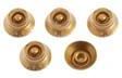 Wolfparts 685160 gałka gitarowa gold Gałka na potencjometr Materiał: Plastik Średnica: 26mm / 17mm Kolor: Złoty Napis: Biały Gałka pasuje na potencjometr o 6mm średnicy trzpienia