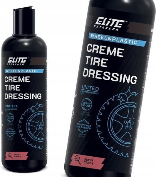 ELITE DETAILER - CREME TIRE DRESSING 500mlKREMOWY DRESSING DO OPONWyjątkowo trwały krem do opon oraz elementów gumowych o zapachu cukierków. Pozwala na uzyskanie trwałej ochrony przed czynnikami atmosferycznymi, zapobiega starzeniu się gumy. Pozostawia długotrwały efekt hydrofobowy. Dwa efekty wykończenia w zależności od sposobu użycia Zawiera żywicę i krzemionki.DOSTĘPNE POJEMNOŚCI: 0,5Lzapach: CUKIERKISposób aplikacji: aplikatorTyp: gotowy do użyciaKategoria: ZABEZPIECZENIE OPON I PLASTIKÓWJAK UŻYWAĆ?Nanieś na czystą i suchą oponę za pomocą aplikatoraRozprowadź równomiernieWytrzyj do suchaWykończenie połysk:Nanieś na czystą i suchą oponę za pomocą aplikatoraRozprowadź równomierniePozostaw do wyschnięciaDla lepszego efektu powtórz kroki 1-3Powyższy produkt powstał według idei UNITED 4 INNOVATIONS, która zakładała współpracę profesjonalnych salonów detailingowych z naszym działem produktów.W trakcie trwających ponad rok wspólnych prac w laboratorium spędziliśmy setki godzin na testowaniu produktów, aby stworzyć preparaty, które zadowolą nawet najbardziej wymagających odbiorców. Do stworzenia innowacyjnej serii chemii i kosmetyków samochodowych używamy surowców i komponentów największych, renomowanych producentów na świecie.Każdy z produktów, który oddajemy w Państwa ręce, jest owocem tej wyjątkowej współpracy ekspertów, wieloletnich praktyków i prawdziwych pasjonatów detailingu.