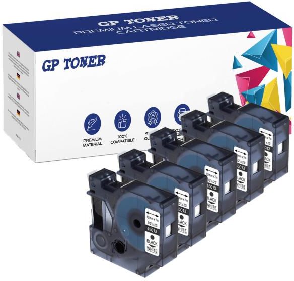 GP TONER Taśma do Dymo D1 45013 12mm 7m Biała Czarny Zamiennik 5szt. Kluczbork