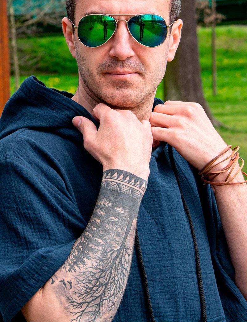 Bardzo wygodna koszula męska z muślinu ciemnoniebieska z kapturem. Koszula posiada krótkie rękawy do łokcia. Miękki muślinowy materiał sprawia, że nadaje się na różne okazje, jak np. spotkania z przyjaciółmi, wakacje. Muślinowa koszula/bluzka męska jest idealna na ciepłe letnie popołudnia. …