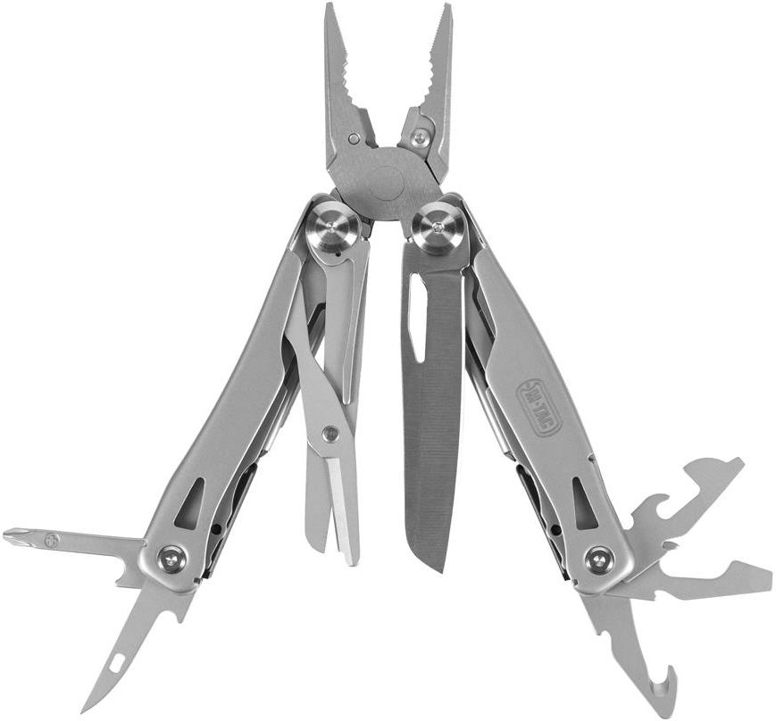 Wybierasz się na wędrówkę, piknik lub wędkarstwo? Zabierz ze sobą kompaktowy wielofunkcyjny multitool Type 7 marki M-Tac. Wyposażony jest we wszystkie niezbędne narzędzia, które przydadzą się zarówno podczas długiego pobytu w terenie, jak i w życiu codziennym. Multitool posiada wiele przydatnych narzędzi: kombinerki i przecinaki do drutu, nóż, nożyczki, śrubokręt krzyżakowy i dwa śrubokręty płaskie (mały i duży), otwieracz do konserw, otwieracz do puszek, przecinak do pasów oraz szydło. Wszystkie elementy są szczelnie zamocowane w pozycji otwartej i zamkniętej. Dzięki ergonomicznemu kształtowi multitool doskonale pomieści się w dłoni i nie wyślizguje w czasie użytkowania. Multitool wyposażony jest w specjalny pokrowiec ułatwiający transport. Świetnie zmieści się także w torbie czy plecaku, nie zajmując dużo miejsca. Materiał: Stal nierdzewna Długość w stanie zamkniętym: 10,5cm Waga: 248 gramów Narzędzia: - kombinerki; - przecinaki do drutu; - nóż; - nożyczki; - śrubokręt krzyżakowy; - dwa śrubokręty płaskie (mały i duży); - otwieracz do konserw; - otwieracz do puszek; - przecinak do pasów; - szydło Dodatkowo: Nylonowy pokrowiec