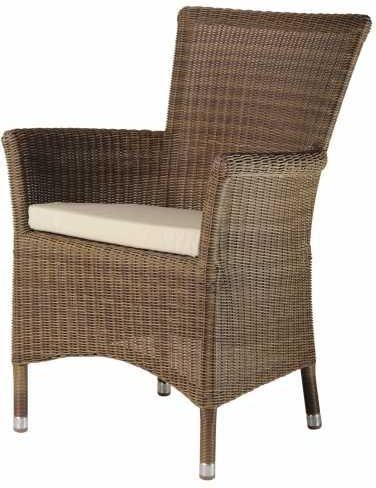 Alexander Rose - luksusowe meble do Twojego ogrodu lub patioWysokiej jakości luksusowe meble ogrodowe są podstawowymi produktami oferowanymi przez markę Alexander Rose, której korzenie sięgają 1994 roku oraz afrykańskiej Ghany - tam właśnie powstała pierwsza fabryka, której owoce pracy przeznaczone były na rynek brytyjski. Dziś produkty opatrzone tym brandem służą swoim różnorodnym nabywcom - centrom ogrodnicznym i spa, hotelom, restauracjom, klubom oraz domom opieki, a także indywidualnym odbiorcom ceniącym najwyższą jakość wykonania oraz estetykę łączącą nowoczesność z magią ręcznego rzemiosła. Wizją marki Alexander Rose pozostaje chęć bycia docenionym w Europie oraz na świecie za jakość oraz design mebli ogrodowych. Ponadto zarządzający brandem za cel swojej działalności postawili sobie wyróżnianie się doskonałą obsługą swoich klientów i działanie na rzecz ich maksymalnego zadowolenia - stąd produkty przez nich oferowane najczęściej posiadają wydłużoną gwarancję użyteczności - nawet do 10 lat. Warto również zwrócić uwagę, że surowiec do produkcji drewnianych mebli ogrodowych pozyskiwany jest z odpowiednio zarządzanych lasów tak, by zminimalizować wpływ jego pozyskania na środowisko. Cały proces produkcji został unowocześniony w celu zmniejszenia śladu węglowego, a ilość wykorzystywanych niebezpiecznych dla środowiska materiałów została maksymalnie ograniczona. Długi możliwy czas użytkowania oferowanych produktów znacząco również rzutuje na ochronę środowiska naturalnego. Kolekcja SAN MARINOKolekcja SAN MARINO oddaje bogactwo i elegancję regionu śródziemnomorskiego, tworząc świetną atmosferę w twoim ogrodzie. Meble z tej kolekcji posiadają stylowe wykończenie krawędzi w stylu "liny". Dodatkowym atutem jest fakt, że meble tkane są tradycyjnym splotem koszykowym przy użyciu trzymilimetrowych włókien Red Pine Rose. Elegancki design, najwyższej klasy materiały oraz niesamowita wygoda gwarantuje, że kolekcja SAN MARINO będzie świetnie się prezentować i pozwoli poczuć prawdziwy komfort w każdym ogrodzie, tarasie lub patio. Zalety mebla poduszka odporna na warunki atmosferyczne w kolorze OWSIANKA; na specjalne życzenie możliwe dopasowanie dodatkowego pokrowca w kolorze ZIELONY; odporność na działanie promieni UV; odporność na warunki atmosferyczne; niepowtarzalne wzornictwo; wzmocniona konstrukcja stelaża; rama aluminiowa, malowana proszkowo; dodatkowe wzmocnienia zapewniają długotrwałą wygodę i komfort użytkowania. Materiały i wykonanieFotel SAN MARINO marki Alexander Rose jest wykonany z najwyższej jakości ekologicznego tworzywa Red Pine Rose o grubości 3mm oraz w kolorze CZERWONA SOSNA. Wspomniane tworzywo tkane jest za pomocą tradycyjnego splotu koszyczkowego, co nadaje bryle sporą dozę klasycznego wyglądu. lekki stelaż jest wykonany z aluminium malowanego proszkowo; konstrukcja mebla jest ręcznie opleciona tworzywem Red Pine Rose, co dodatkowo potęguje efekt naturalności; tworzywo Red Pine Rose cechuje się wyjątkową lekkością oraz wytrzymałością na warunki atmosferyczne, takie jak deszcz i śnieg; dzięki zastosowaniu nowoczesnego materiału uzyskano doskonałą jakość oraz wytrzymałość; w komplecie znajduje się poduszka, którą wytworzono z wodoodpornego materiału. Zapewnia ona komfortowe użytkowanie mebla; pokrowiec na poduszkę jest zaimpregnowany, dzięki czemu jest odporna na warunki atmosferyczne oraz poplamienia, dzięki czemu przypadkowo wylane napoje nie stanowią już żadnego problemu.