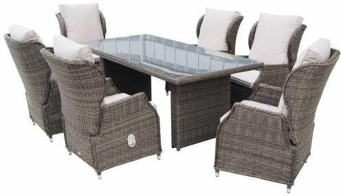 Wszystkie wybarwienia kompletu można zobaczyć na ekspozycji sklepu stacjonarnego. BelGiardino - meble ogrodowe z technorattanuDzięki zdobytemu na przestrzeni lat doświadczeniu jesteśmy w stanie dostarczyć główne elementy aranżacji ogrodów, tarasów oraz balkonów. Z roku na rok staramy się dopracowywać naszą kolekcję, odpowiadając na potrzeby klientów i zmieniające się trendy. Polecamy wysokiej jakości meble ogrodowe z technorattanu, które w każdej chwili dostosować można do aktualnych potrzeb. Skład kompletu jeden stół prostokątny z blatem z hartowanego szkła o grubości 5mm; sześć foteli rozkładanych z poduszkami w kolorze BEŻOWY SZARY i o grubości 5cm; opcjonalne dwa dodatkowe fotele; opcjonalny dodatkowy pokrowiec w kolorze GRAFIT. Zalety kompletu odporność na działanie promieni UV; odporność na warunki atmosferyczne; elegancka plecionka; niepowtarzalne wzornictwo; wzmocniona konstrukcja stelaża; rama aluminiowa, malowana proszkowo; dodatkowe wzmocnienia zapewniają długotrwałą wygodę i komfort użytkowania mebli ogrodowych. Materiały i wykonanieKomplet mebli ogrodowych ROMA marki BelGiardino jest wykonany z PÓŁOKRĄGŁEGO technorattanu w kolorze BRĄZOWY MAT i o grubości 6mm, który jest doskonałą imitacją naturalnego rattanu. lekkie stelaże są wykonane z aluminium malowanego proszkowo; konstrukcja mebli ogrodowych jest ręcznie opleciona wspomnianym rattanem PE, co potęguje efekt naturalności; technorattan cechuje się wyjątkową lekkością oraz wytrzymałością na warunki atmosferyczne, takie jak deszcz i śnieg; dzięki zastosowaniu nowego, syntetycznego materiału uzyskano doskonałą jakość oraz wytrzymałość; w komplecie znajdują się poduszki, które wytworzono z wodoodpornego materiału. Zapewniają one komfortowe użytkowanie zestawu; wszystkie pokrowce na poduszki są zaimpregnowane, dzięki czemu są odporne na warunki atmosferyczne oraz poplamienia, dzięki czemu przypadkowo wylane napoje nie stanowią już żadnego problemu; zastosowany zamek błyskawiczny daje możliwość szybkiego zdjęcia i wyczyszczenia każdej poszewki.