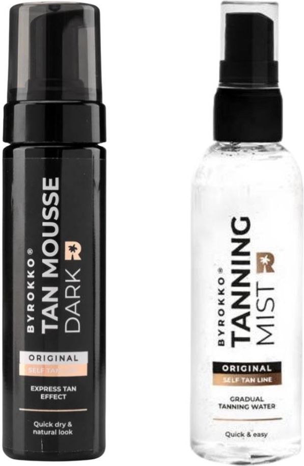 Byrokko Mgiełka Samoopalająca - Stopniowy Efekt 100ml Mgiełka do opalania BYROKKO to spray, który łączy wodę, kochające skórę witaminy i aktywne składniki opalające. Nawilża, zmiękcza i opala Twoją skórę za jednym razem. Dzięki naszej formule na bazie wody nie musisz się martwić o zabrudzenie odzieży lub pościeli. Osiągaj znakomite rezultaty niezależnie od rodzaju skóry. Ciesz się brązującym doznaniem zwieńczonym lekkim, tropikalnym zapachem. Sposób użycia: Przytrzymaj butelkę w odległości 15-20 cm, spryskaj równomiernie twarz i okolice dekoltu. Po zastosowaniu, opalenizna powstanie w ciągu 3-4 godzin. Stosować co 3-5 dni, aby utrzymać idealny blask. Prawdziwa brązowa opalenizna bez odcieni pomarańczy! Bez trudu stworzysz naturalnie wyglądającą opaleniznę twarzy, która równomiernie łączy się z każdym odcieniem skóry. Nasza migiełka jest łatwa do zastosowania, a jednocześnie super skuteczna. Dzięki szybko schnącej, nieklejącej się i lekkiej formule, zaprojektowanej tak, aby Twoja twarz, szyja i klatka piersiowa były pięknie opalone przez cały rok. Opalanie bez słońca Bezbarwny i odporny na rozmazywanie Wegański, naturalny i wolny od okrucieństwa Odpowiedni dla wszystkich rodzajów skóry Mgiełka do opalania BYROKKO posiada naturalne składniki odpowiednie dla wegan. Preparat nie zawiera żadnych ostrych elementów ani nieprzyjemnego zapachu. Ten zmiennik opalania zawiera łagodzący skórę aloes i glicerynę, które nawilżają i chronią skórę przed utratą wody. Jednocześnie, nasza formuła na bazie wody daje Ci naturalnie wyglądającą opaleniznę, bez zatykania porów, zacieków i odwodnienia skóry. Dzięki przejrzystej, wodnej formule mgiełki nie musisz się martwić, że zabrudzisz swoje ubrania lub pościel. Byrokko Tan Mousse Dark - Samoopalacz w piance, ciemny 200ml Opal bez wysiłku swoje ciało w zaledwie kilka minut dzięki ekspresowej formule samoopalacza BYROKKO. Szybkoschnący, nieklejący i lekki, sprawi, że Twoje ciało będzie wspaniale opalone przez cały rok. Szybkoschnąca, bezzapachowa i lekka formuła BYROKKO została zaprojektowana tak, aby Twoje ciało było wspaniale opalone przez cały rok. Wzmacniacze aktywujące melaninę w połączeniu z naturalnymi substancjami aktywnymi do opalania stymulują komórki skóry i przyspieszają rozwój opalenizny. Jak długo trwa proces opalania się? Możesz zostawić piankę na skórze na 1-8 godzin, w zależności od tego, jak ciemna ma być Twoja opalenizna. Im dłużej ją zostawiasz, tym będzie bardziej ciemniejsza. Z BYROKKO twoja opalenizna jest w twoich rękach. Jak szybko po zastosowaniu produktu mogę się ubrać? Aby opalenizna rozwijała się prawidłowo, zalecamy odczekać 10 minut przed założeniem luźnej odzieży. Czy mogę nałożyć piankę gołymi rękoma? Zdecydowanie radzimy ci tego nie robić! Aby uzyskać najlepsze rezultaty, zalecamy użycie rękawicy BYROKKO do aplikacji pianki do opalania. Zapewnia on równomierne rozłożenie opalenizny i daje pożądany efekt bez zacieków.
