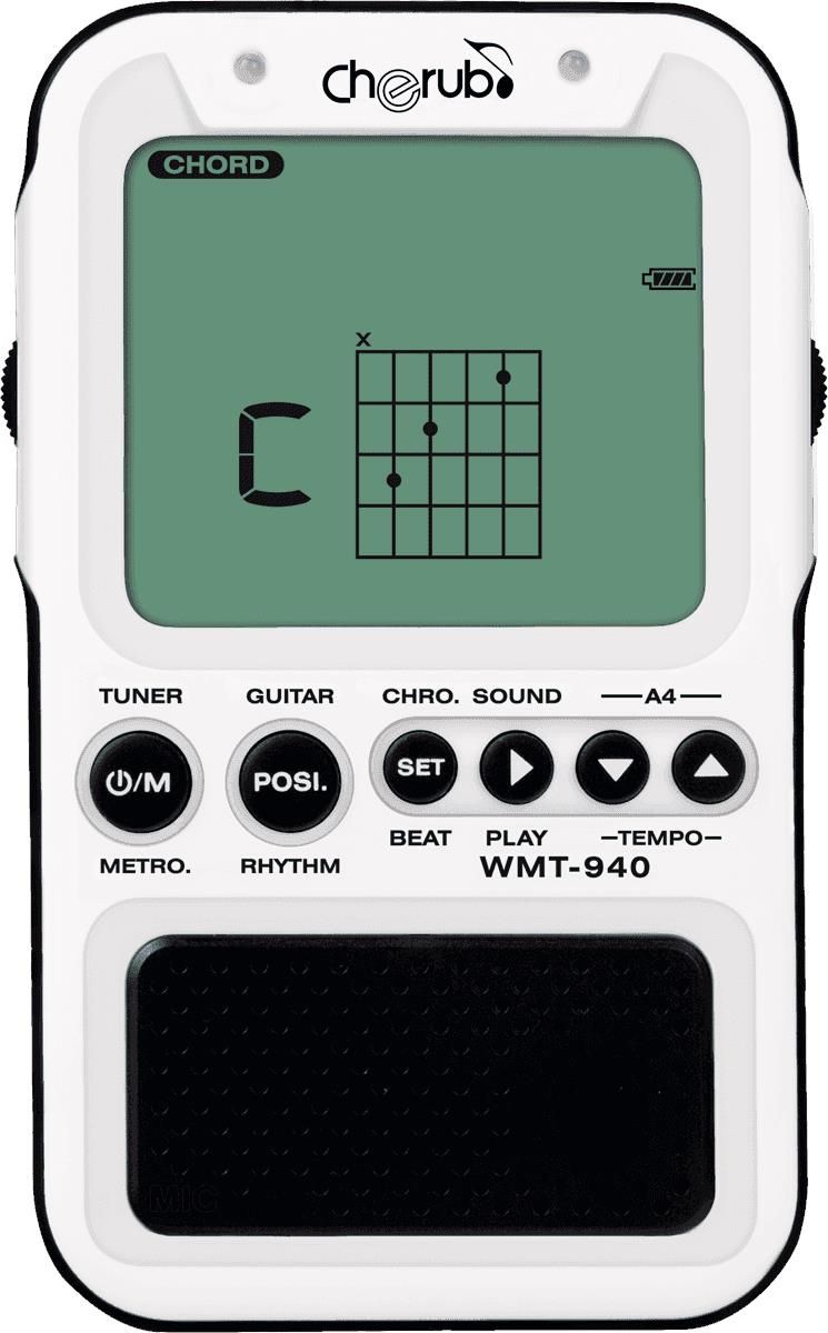 CHERUB WMT-940 TUNER Tuner z biblioteką akordów i metronomem. Generator akordów Zakres wokalny: A0 (27,5 Hz) - C8 (4186,01 Hz) Tryby beat: Human Voice, Ticktack i Cowbell Gniazdo wyjściowe do bezpośredniego nagrywania Zintegrowany mikrofon Wbudowany akumulator ładowany przez port USB